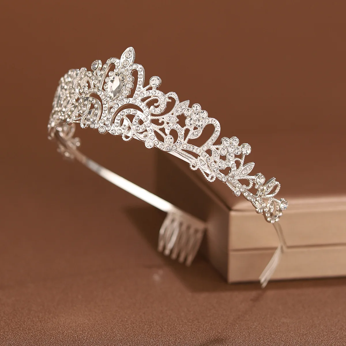Bridal Headwear Silver-Colour Women's Classic Wedding Crown With Comb Girl Birthday Tiaras gift