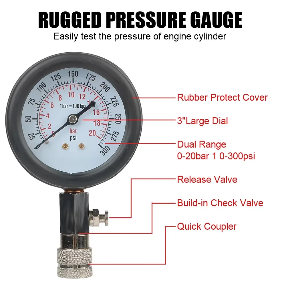 Car Cylinder Tester Kit Gasoline Engine Compression Meter with M10 M12 M14 M18 Adapter Automotive Cylinder Tester Kit