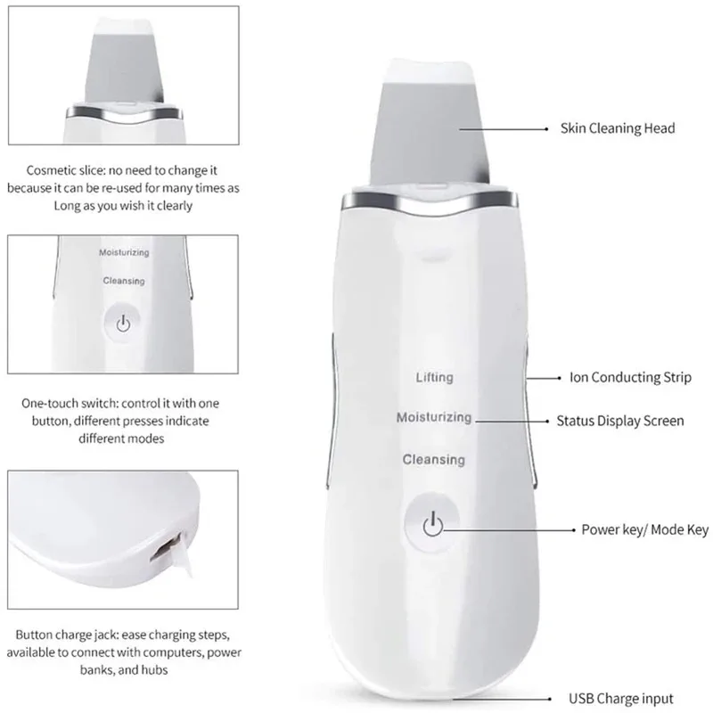 Skin Scrubber Deep Vibrate Facial Cleaner Shovel Spatula Not Ultrasonic Face Scrubber Pore Cleaner Facial Shovel Massager