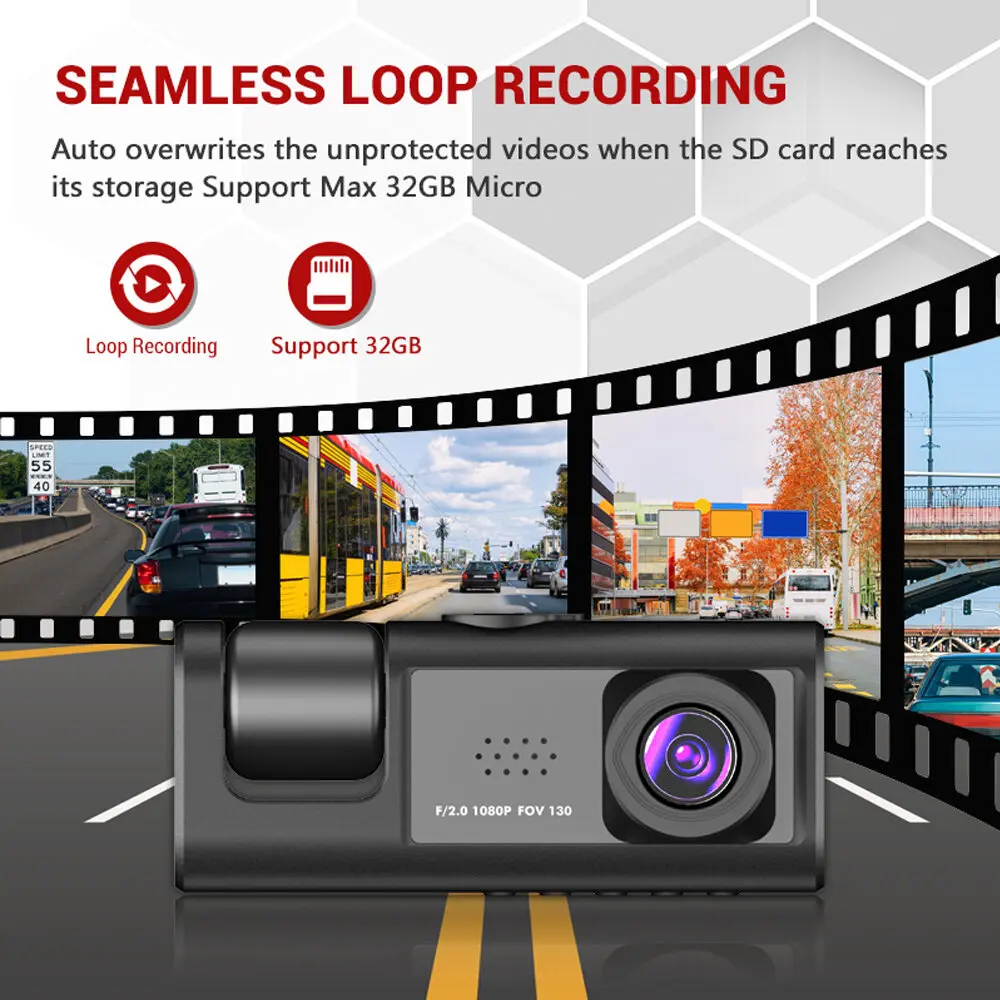 Dash Cam W/ IR Night Vision Loop Recording & 2'' IPS Screen 1080P 3 Camera , DVR recorder, video recorder, Vehicle DVR