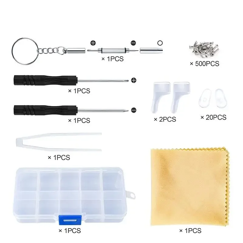 500pcs of glasses and watch repair tool kit, nose support anti slip cover screwdriver nut tweezers kit for glasses repair