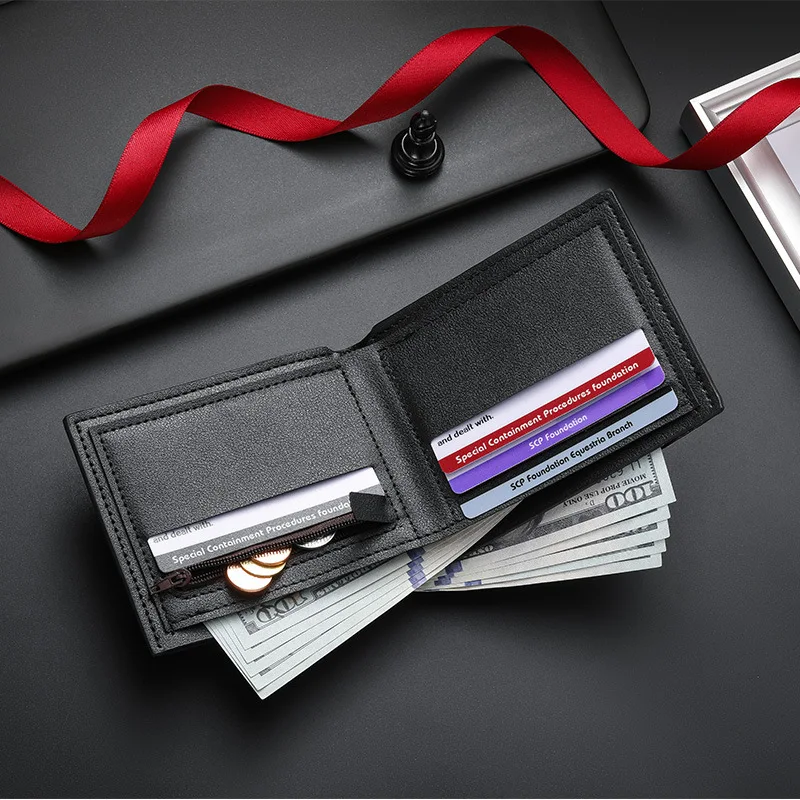 New Shot Carbon Fiber Short Wallet Men's Card Bag Integrated Zipper Change Coin Purse Bag Holder Credit Card Holders