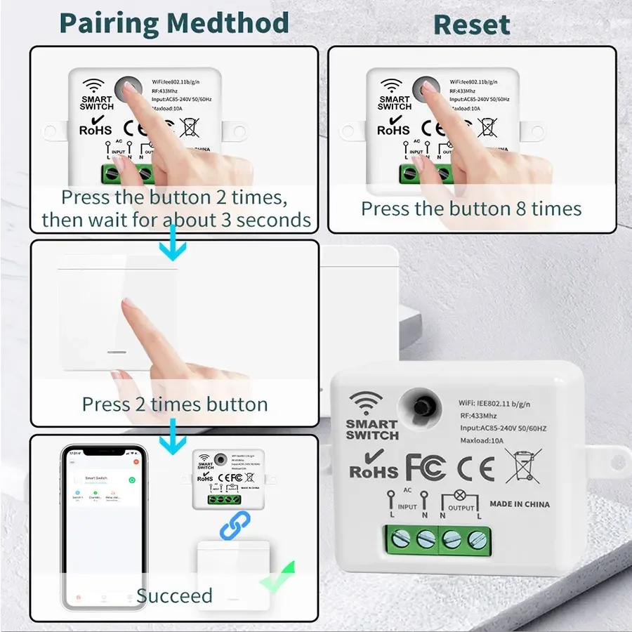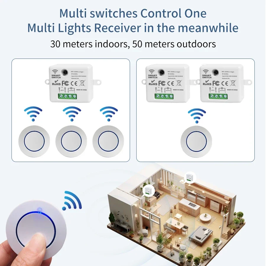 Tuya WiFi On/Off Switch DIY Module RF433Mhz Round Button Remote Google Home Alexa Voice Control Light Bulb Control Smart Switch