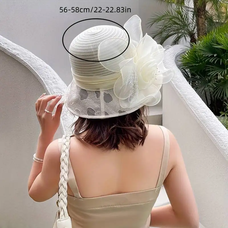 A lady's top hat with an elegant lace flower bow is suitable for wedding tea party dance dinner sun protection decoration