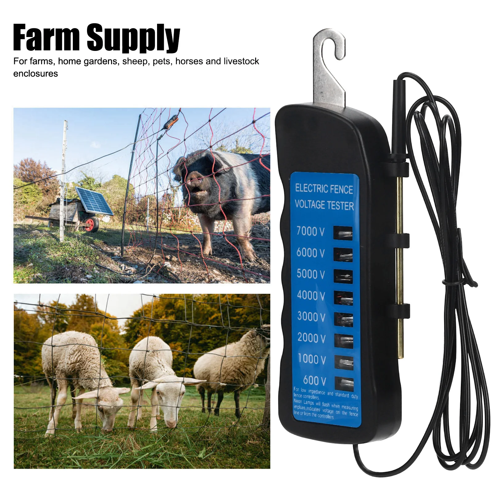 aliexpress , ali , shop , ali shop , online , store , online shop , online store , buy , sell , Electric Fence Tester Multi Light Voltage Detection Portable for Farm Supply Fencing ABS 7000V