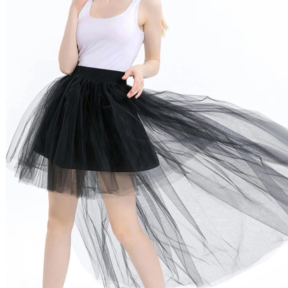 New Arrival High-low Petticoats For Cocktail Dress Elasticated High High Low Mesh Net Halloween Tutu Skirt Gothic Gowns 9 Colors