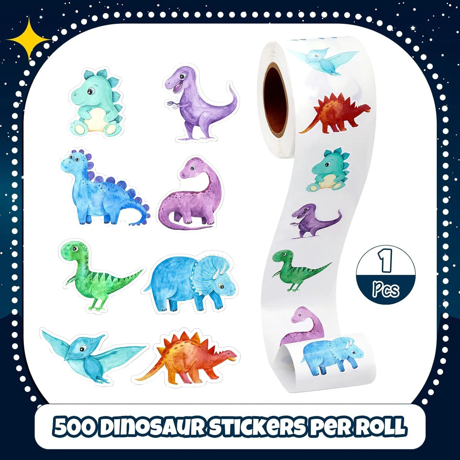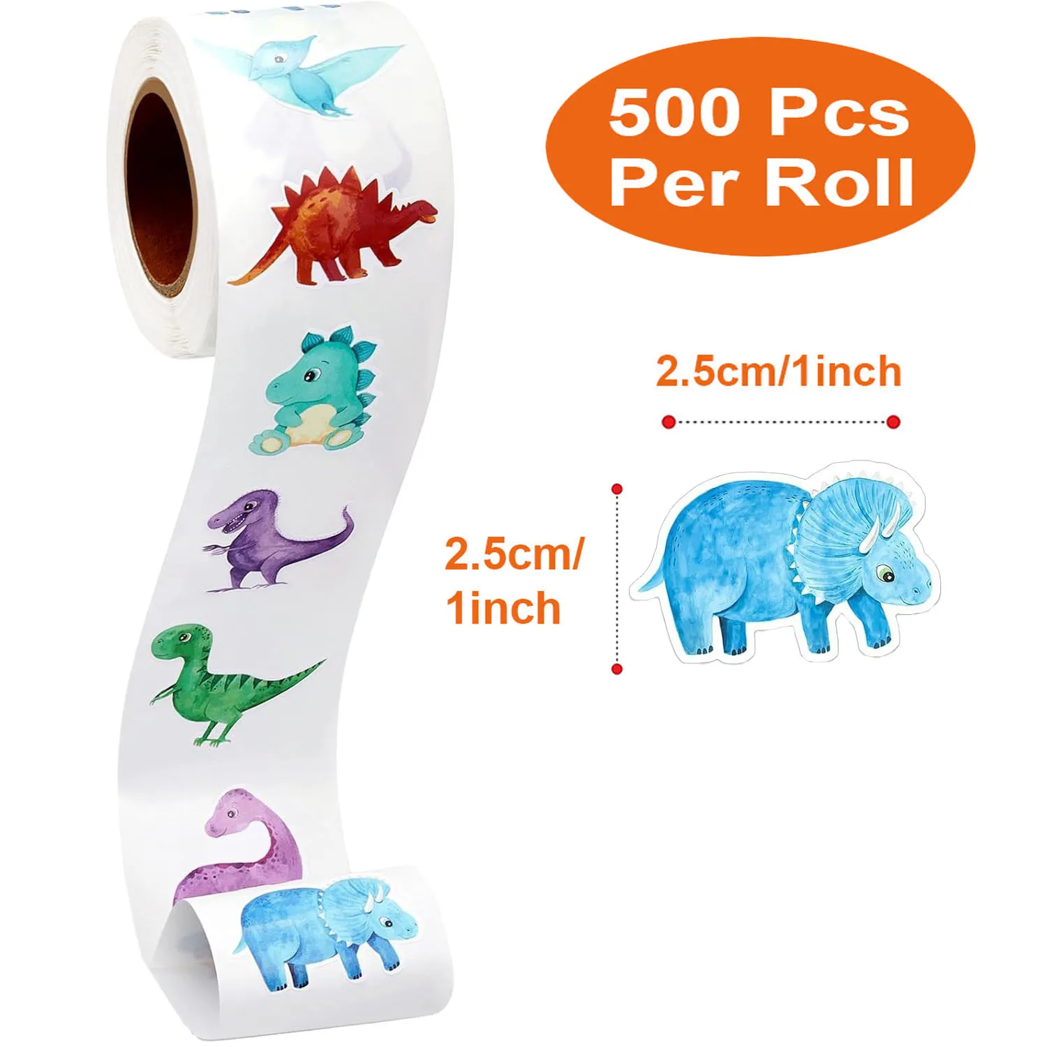 500Pcs/Roll Heterotypic Dinosaur Animals Stickers 2.5cm/1.0'' Graffiti Game Art Labels Learning Rewards, Adorn Party Gifts