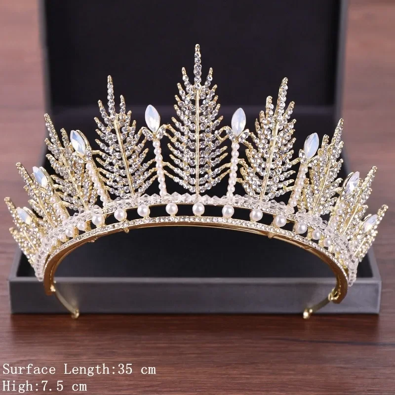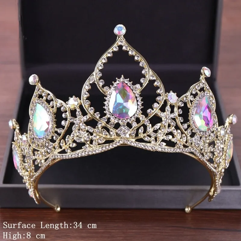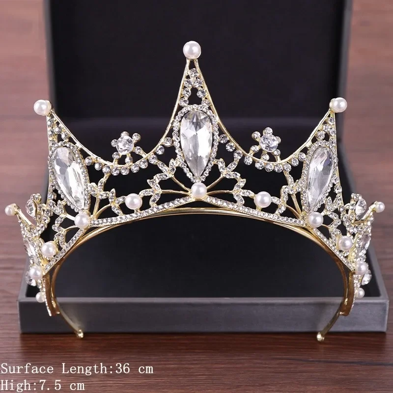 Vintage Baroque Queen Tiara Diadem Gold Wedding Crystal Rhinestone Crown Tiaras Bridal Hair Jewelry Wedding Hair Accessories
