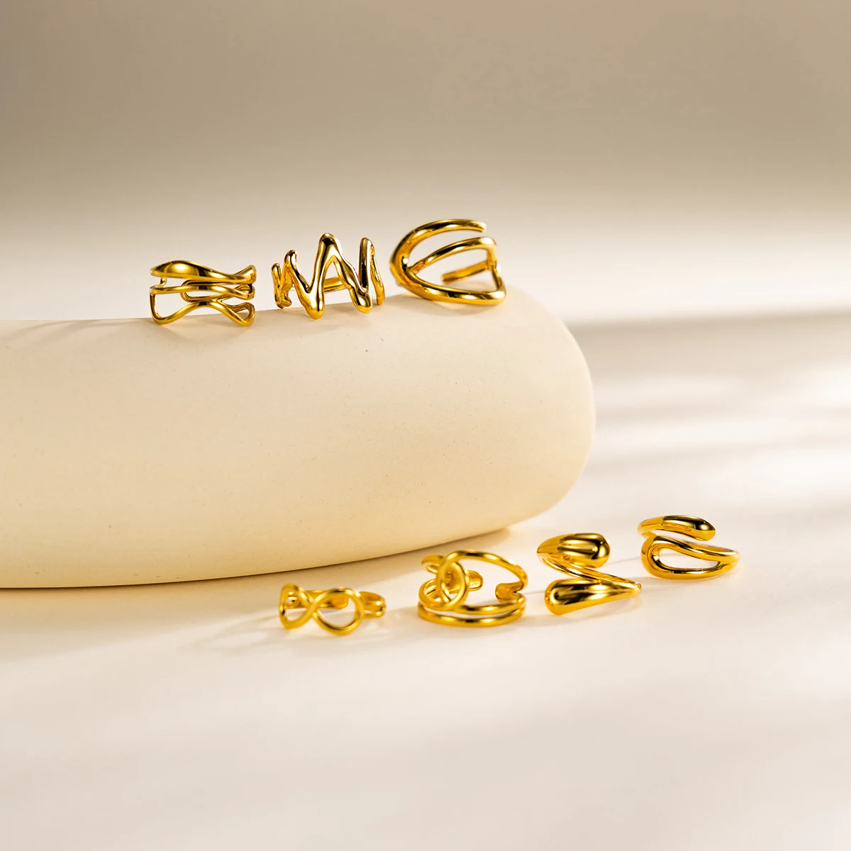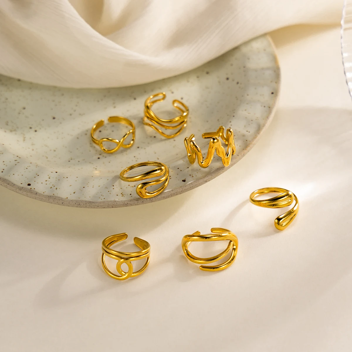 aliexpress , ali , shop , ali shop , online , store , online shop , online store , buy , sell , 1pc Gold Plated 316L Stainless Steel Abstract Wavy, Infinity & Knot Knuckle Ring Set for Women, Adjustable Fashion Jewelry Rings