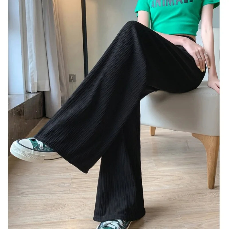 Sleeping Pants Wide-Leg Pants Women Thin High-Waisted Loose Straight-Leg Pants Mopping Pants Solid Color Elastic Pajama Pants