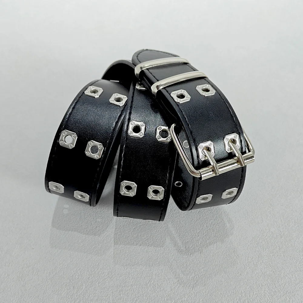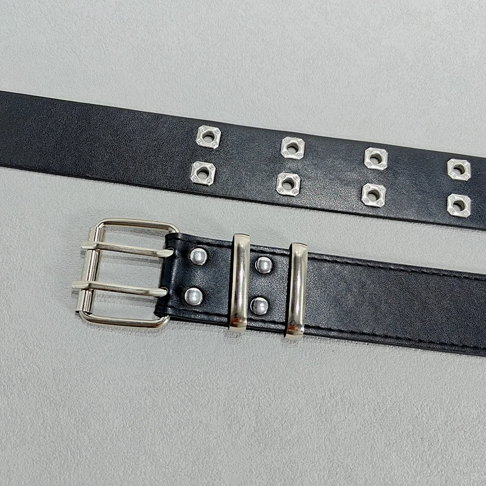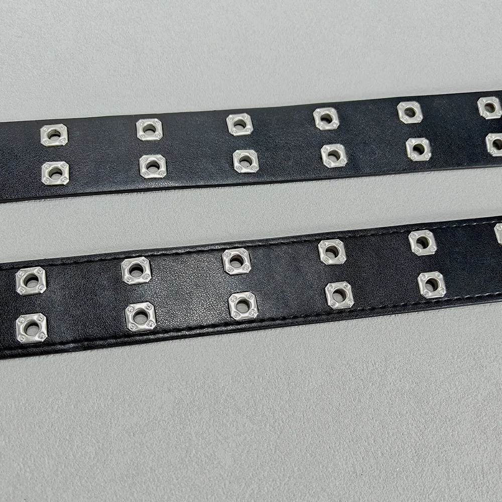 Retro Square Rivet Men's Belt With Three Row Needle Buckle Hip-Hop Rock Punk Y2k Style Jeans Belts For Women Goth Waistband
