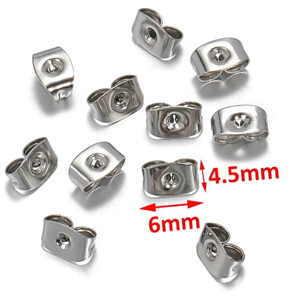 100pcs 4.5x6mm Gold Color Stainless Steel Butterfly Earring Safety Back Stopper for Stud Jewelry Making Finding Supplies