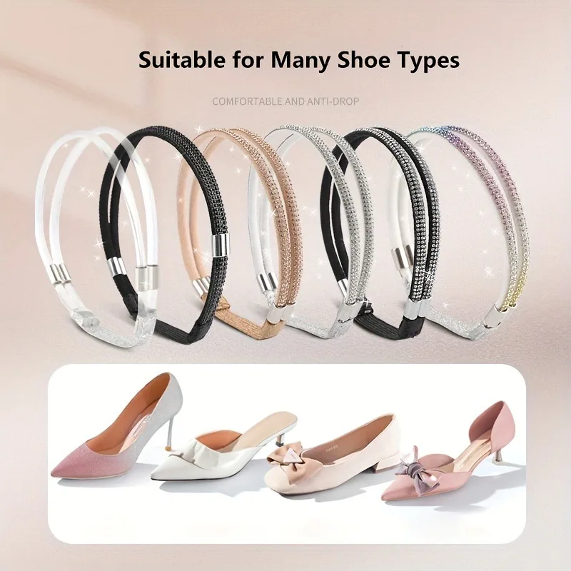 High Heels Shoes Band Anti-loose for Women Diamond Shoelaces Anti-drop Heel Straps Belt Drill Elastic Fixing Belts Rhinestone