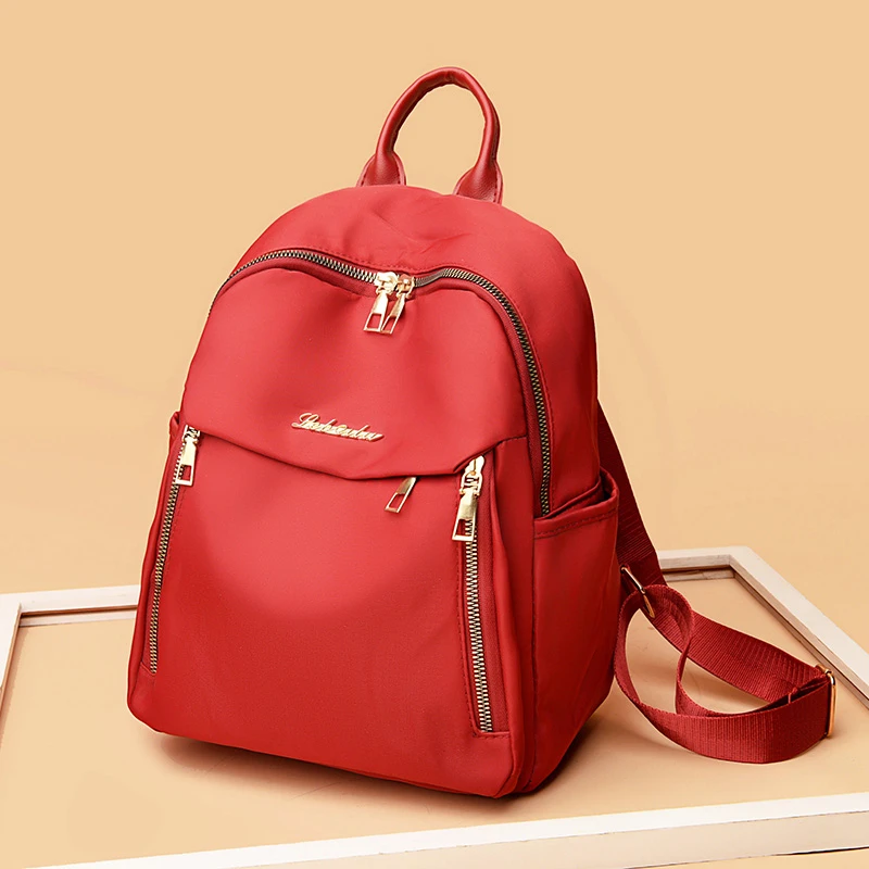 1 women's travel backpack, large capacity Oxford cloth nylon backpack, with adjustable shoulder straps, black color, zipper clos