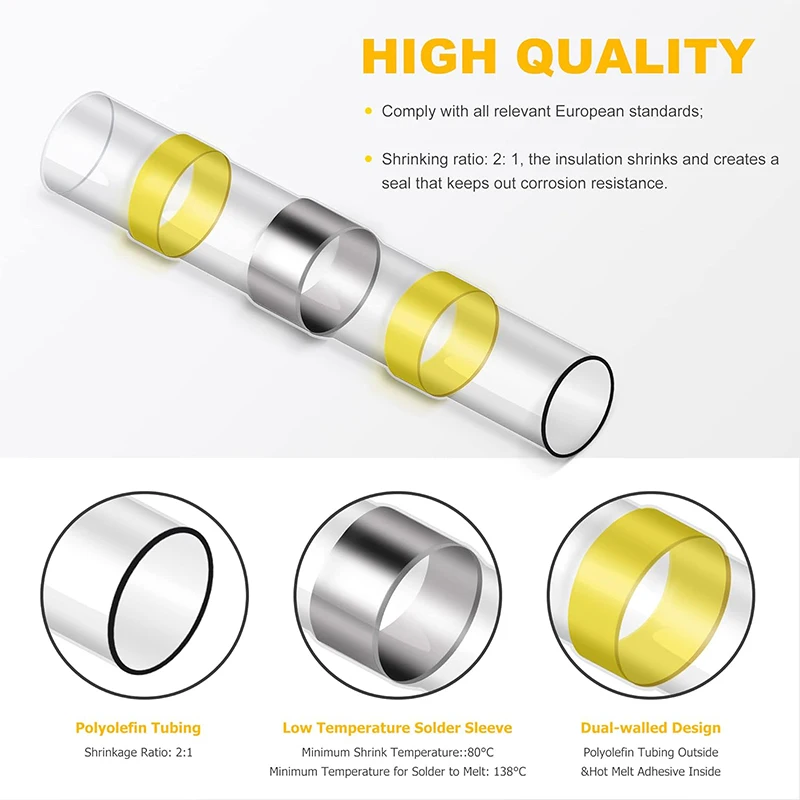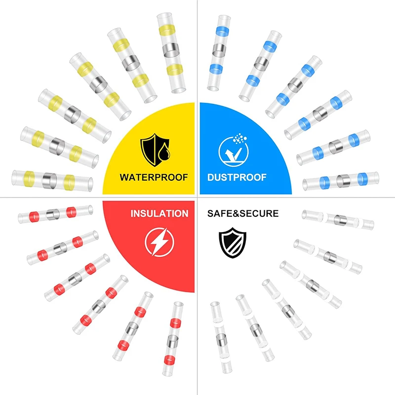 100Pcs Boxed Solder Seal Wire Connectors 3:1 Heat Shrink Insulated Electrical Wire Terminals Butt Splice Connector Waterproof