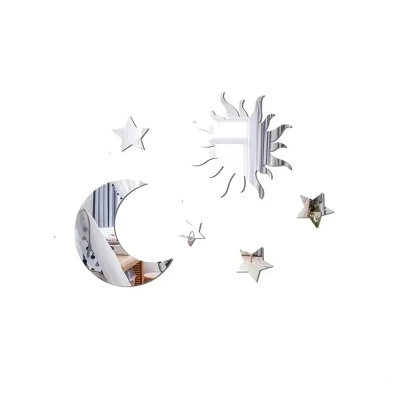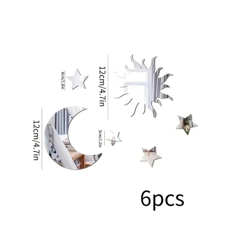 aliexpress , ali , shop , ali shop , online , store , online shop , online store , buy , sell , 6pcs Star & Moon Combination Mirror Wall Sticker for Bedroom and Living Room - Ramadan Kareem, Holiday, Birthday Party Supplies,