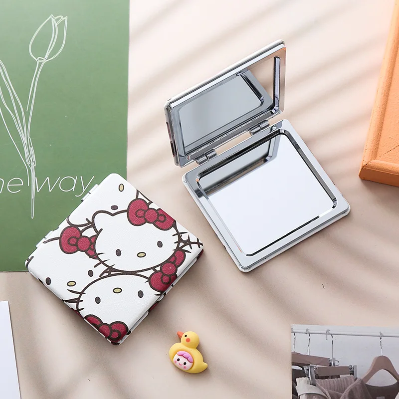 Hello Kitty Mirror Portable Small Mirror Hello Kitty Sanrio Portable Folding Mirrors Double-Sided Pattern Makeup Gift For Girl