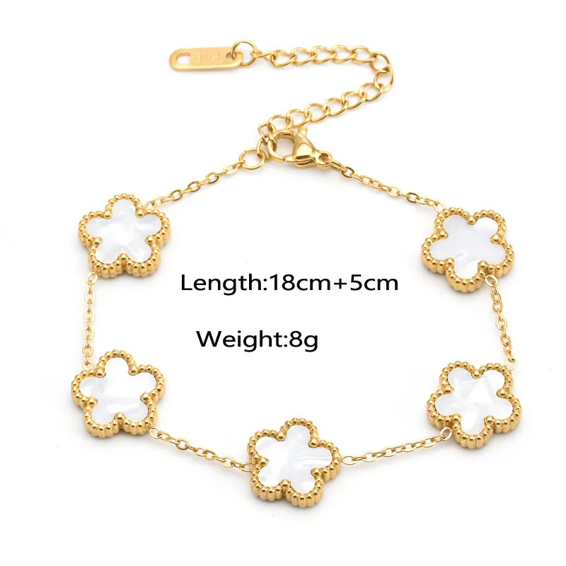 Adjustable Gold-Plated Stainless Steel Plant Flower Bracelet With Five Leaf Petals Women's Luxury Gifts Clover