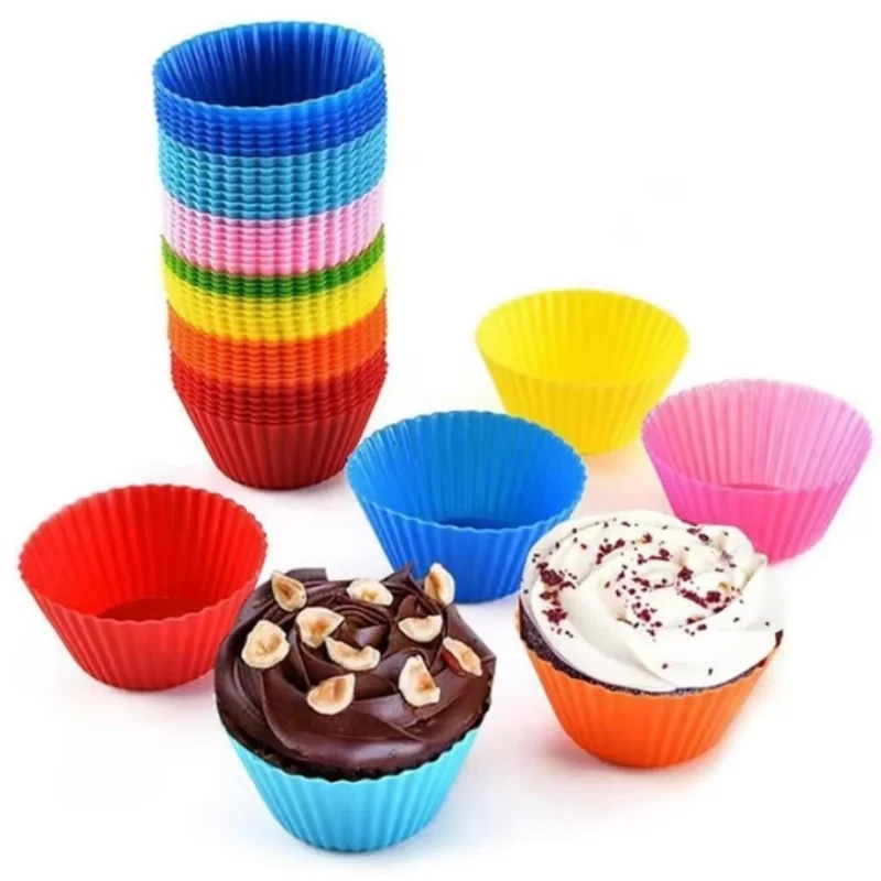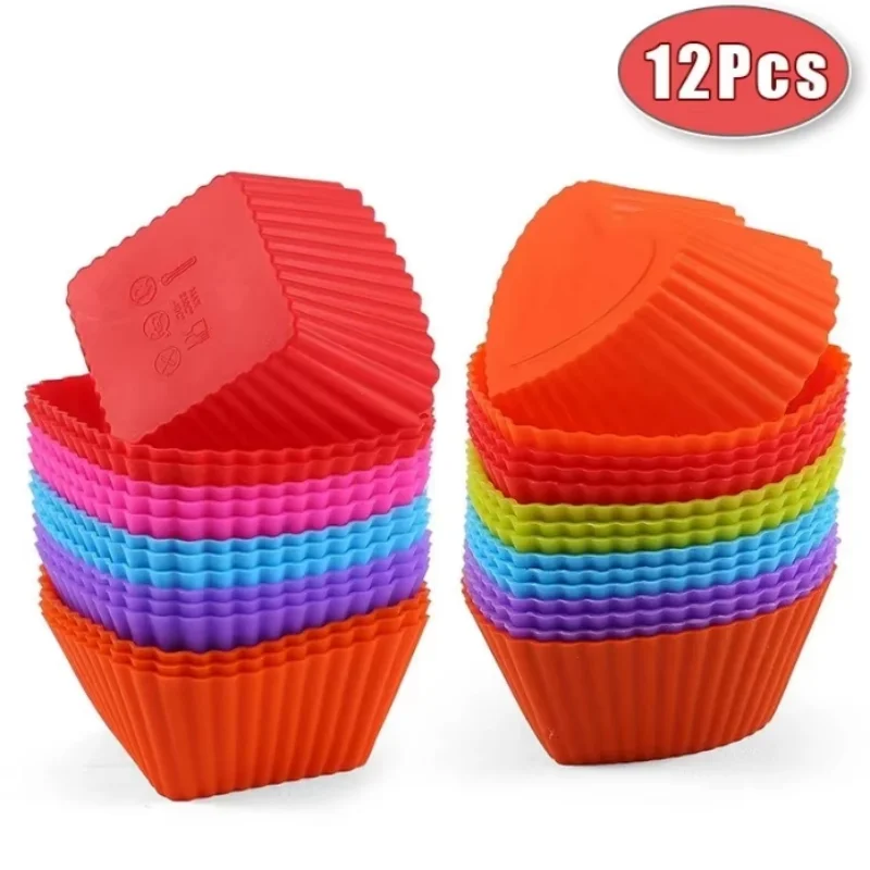 12pcs/lot Silicone Cake Mold Round Heart Shape Muffin Cupcake Baking Molds Home Kitchen Bakeware BPA Free