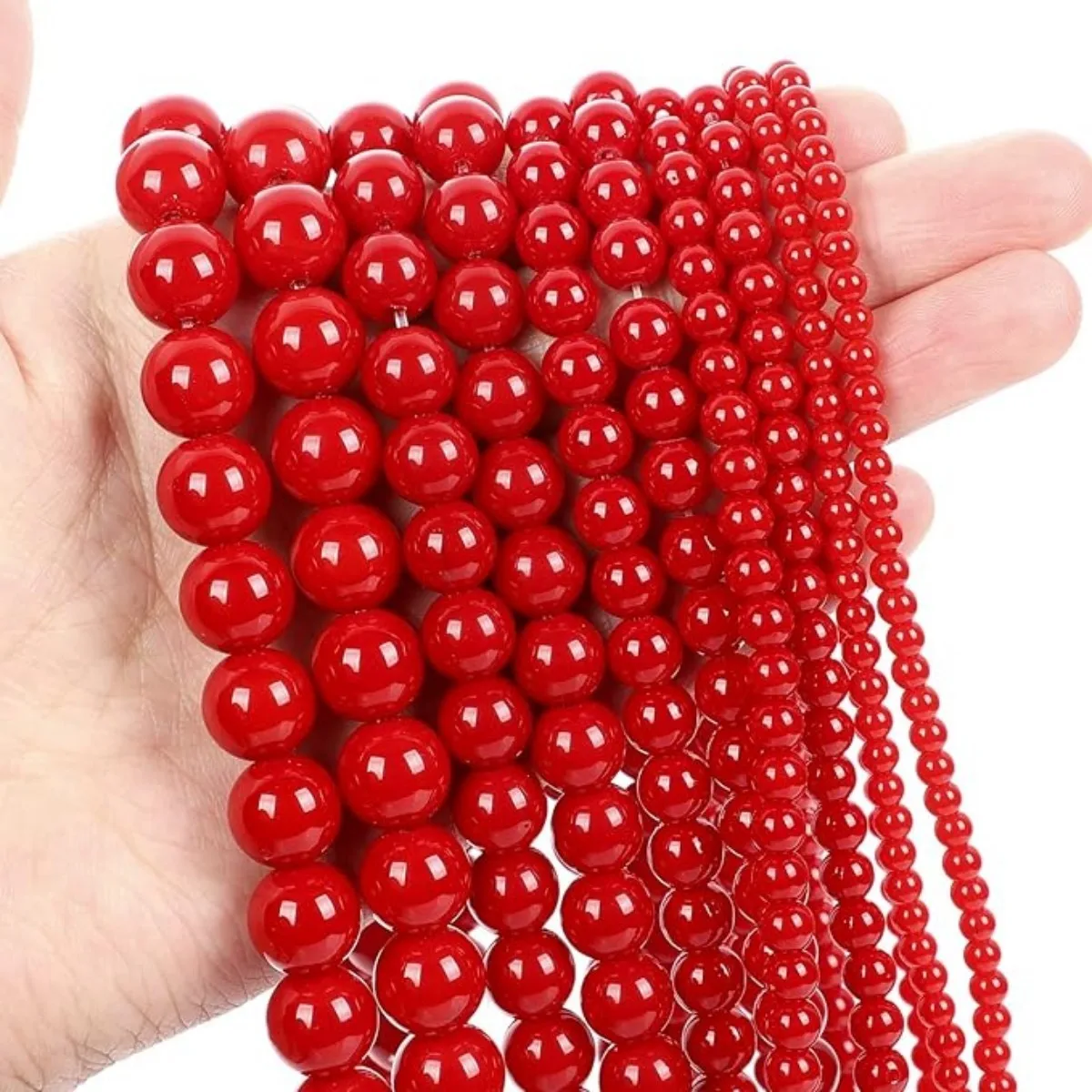 Red Coral Gless Stone Beads Round Loose Spacer Beads for Jewelry Making DIY Charms Bracelet Necklace Accessories 6 8 10mm