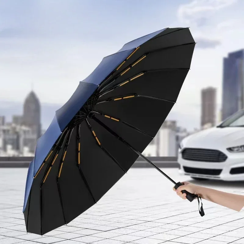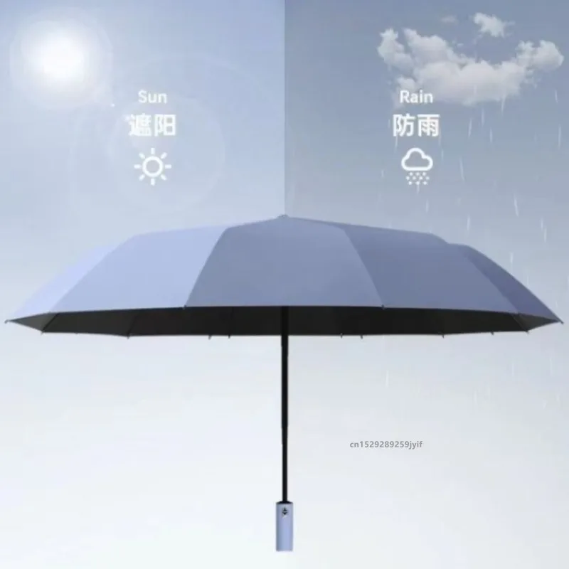 12K Double Bones Black Glue Automatic Umbrella With Thick And Durable Keel Three Fold Umbrella UV Resistant Folding Umbrella