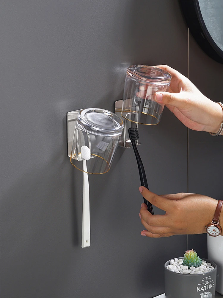 1 Piece Stainless Steel Toothbrush Wash Cup Holder, Home Perforation-Free, Wall-Mounted, Bathroom Shelf Storage Rack