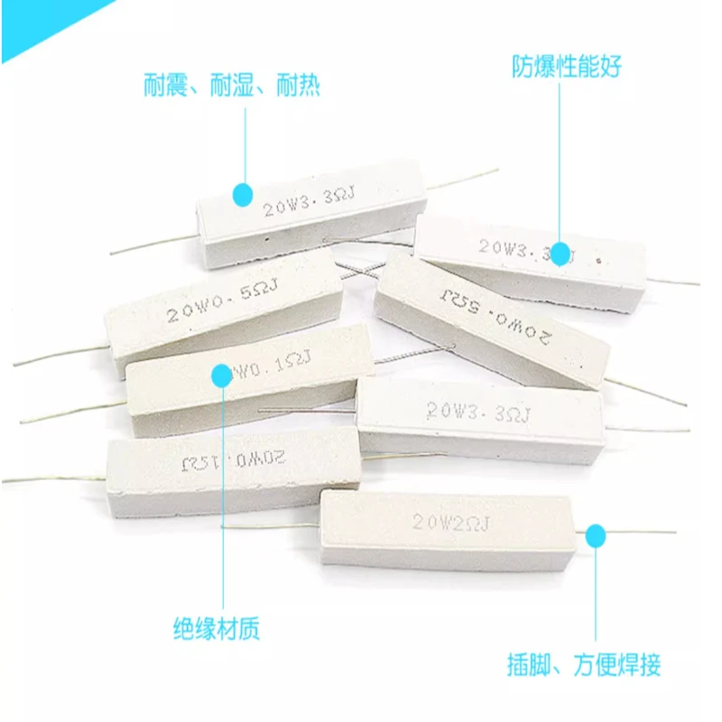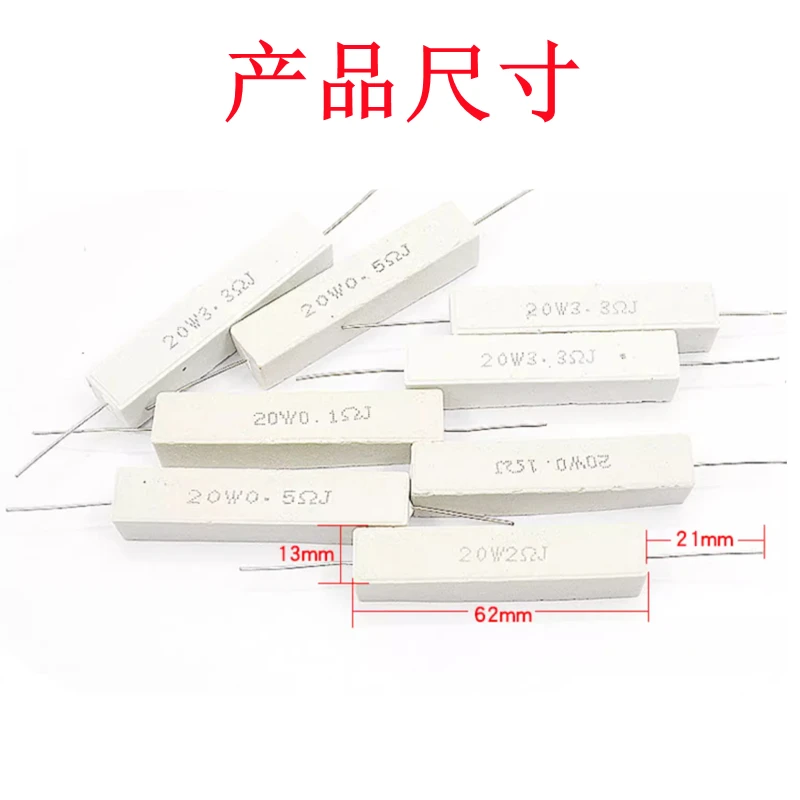 10PCS 20W ceramic cement resistor 0.1R 0.22R 0.47R 1R 2R 10 ohms 1K 10K 100K 200K direct insertion high-power cement resistor
