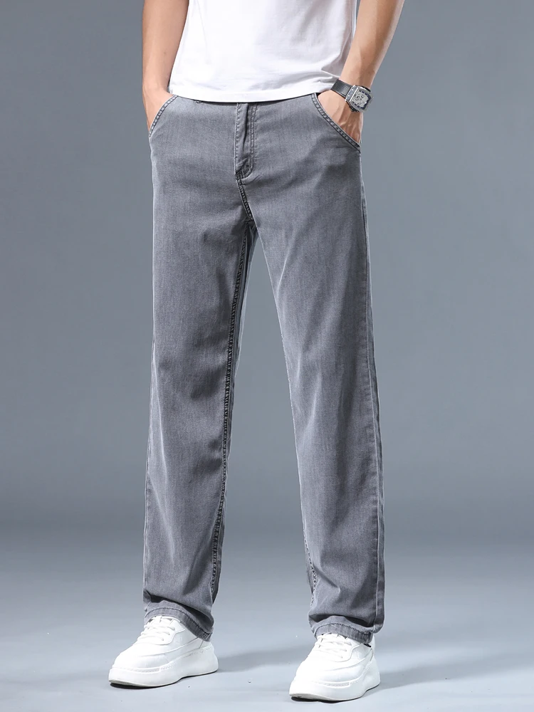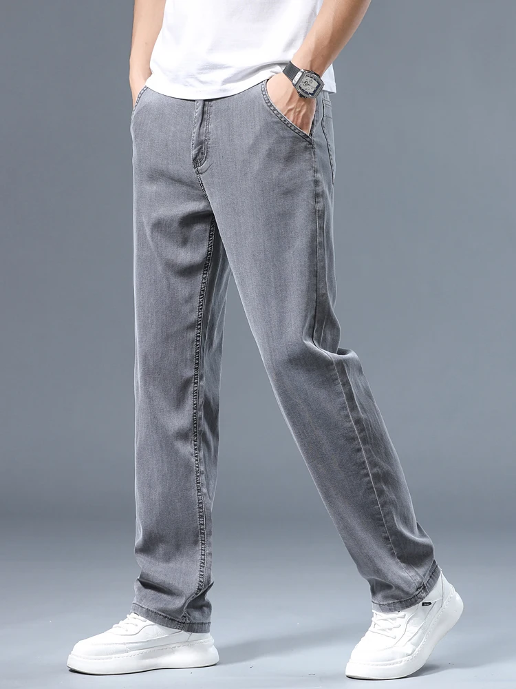 ALI shop - search results ... ... Summer Thin Men's Loose Straight Jeans Lyocell Soft Drape Business Casual Trousers Classic Smoke Gray Brand Ice Silk Pants ::: 2021 ::: :::