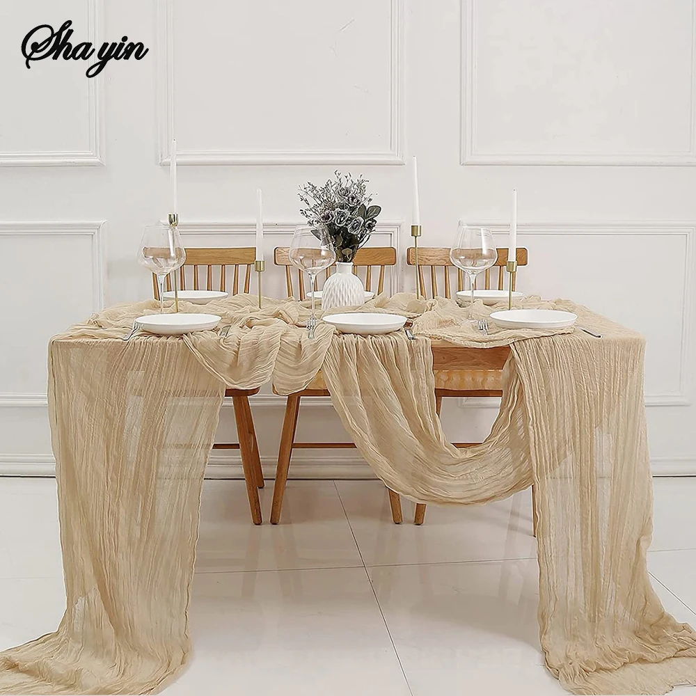 Semi-Sheer Gauze Table Runner Sage Cheesecloth Table Setting Dining Vintage Wedding Party Christmas Banquets Arches Cake Decor