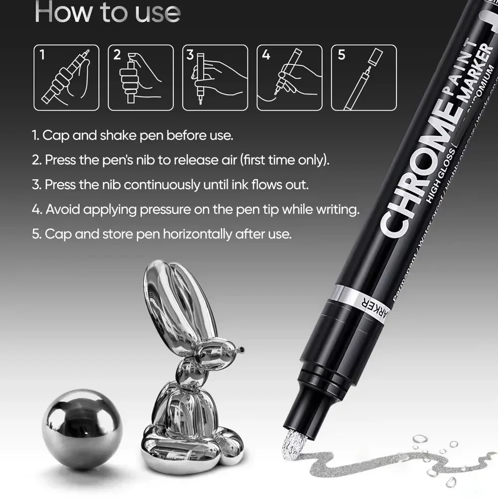 Chrome Pen Marker Mirror Waterproof Paint Repair For Rock Ceramic Glass Metallic Gold/Silver 2mm Nib