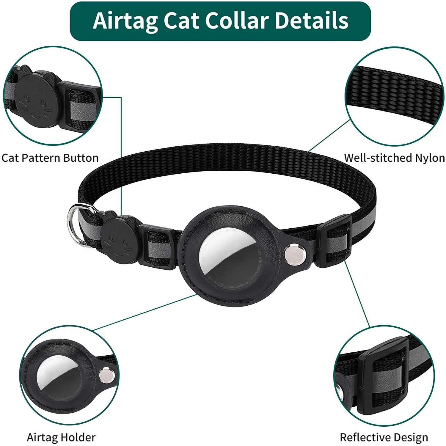 Cat AirTag Holder Collar Breakaway Reflective Strips Adjustable Kitten Collar Waterproof Cat Bell Collar Pet Air Tag Case collar
