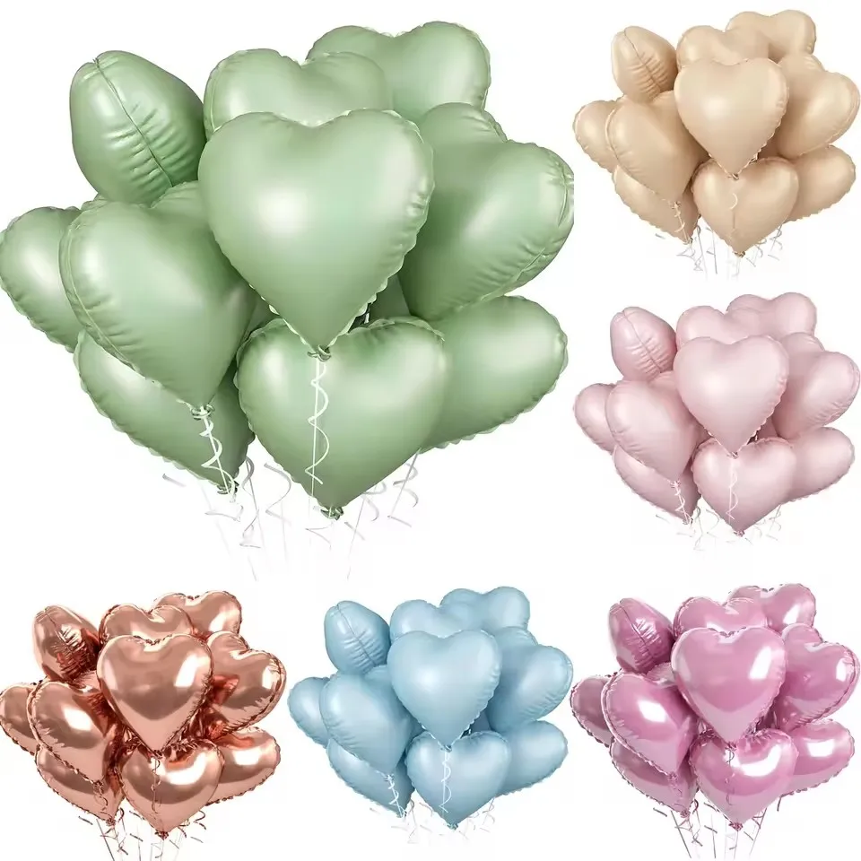 10pcs 18inch Heart Foil Balloons Pink Sage Green Heart Balloon for Birthday Party Valentines Day Wedding Anniversary Decorations