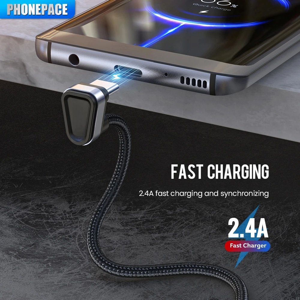 PHONEPACE USBType C Cable For Samsung Xiaomi mi Redmi USB C Cable 2.4A Fast Phone Charging Data Cord Type C 180 Degree USB Cable