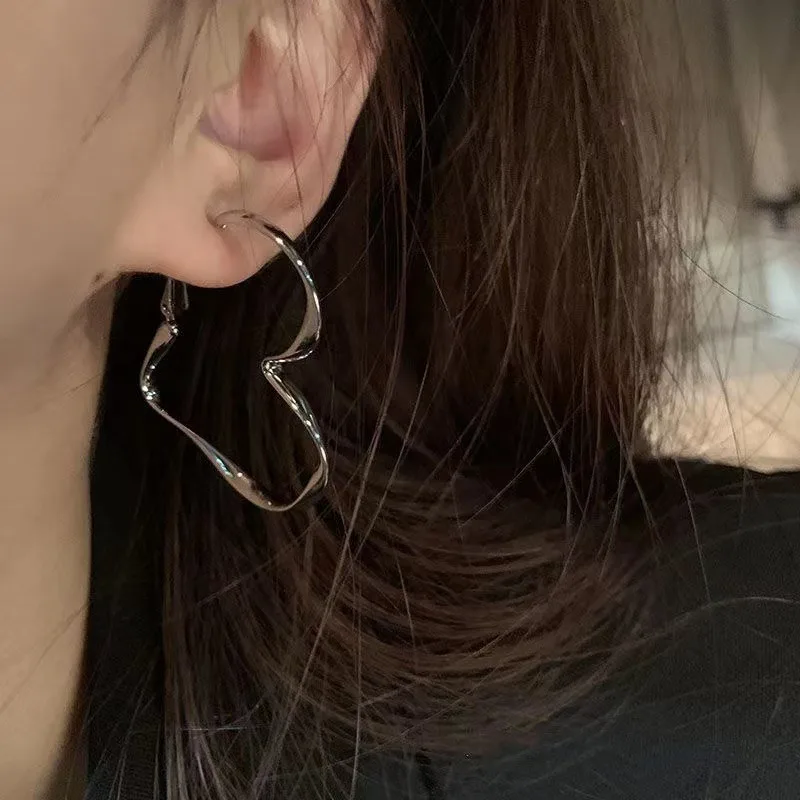 2Pcs Trendy Love Women Fashion Earring, Personality Exaggerated Hollow Heart Design Earring Cuff For Girls Birthday Jewelry Gift