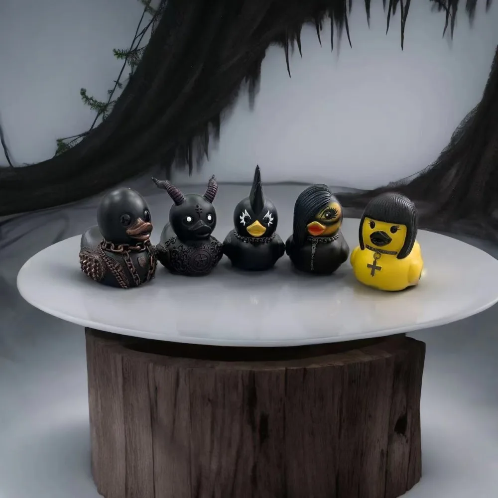 Duck Gothic punk duck, novelty duck decorated with Halloween decorations, punk duck in 1980s, dark Satan duck Gothic gift.