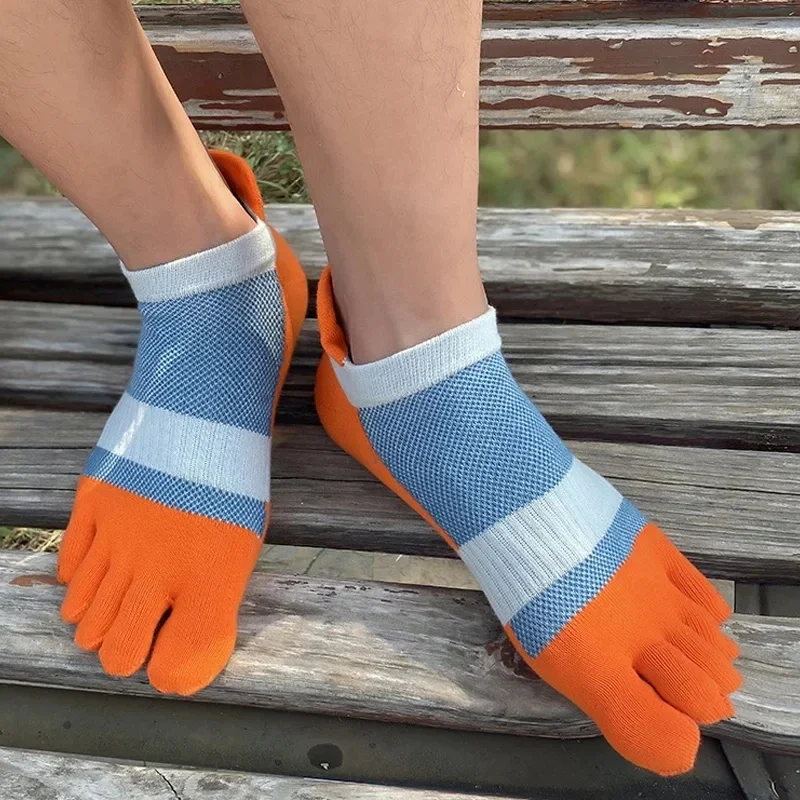 Large Size Toe Sport Socks Man Mesh Business Sweat-Absorbing Shallow Mouth Striped Fitness Travel 5 Finger Socks Plus EU43-47