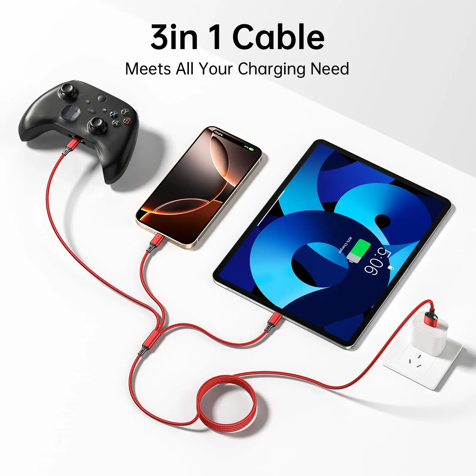 3-in-1 Fast Charging Cable for iPhone, Xiaomi, USB-C, Micro USB, 1.2m Multi-Port USB Charger Cord for Phones, Tablets & Devices
