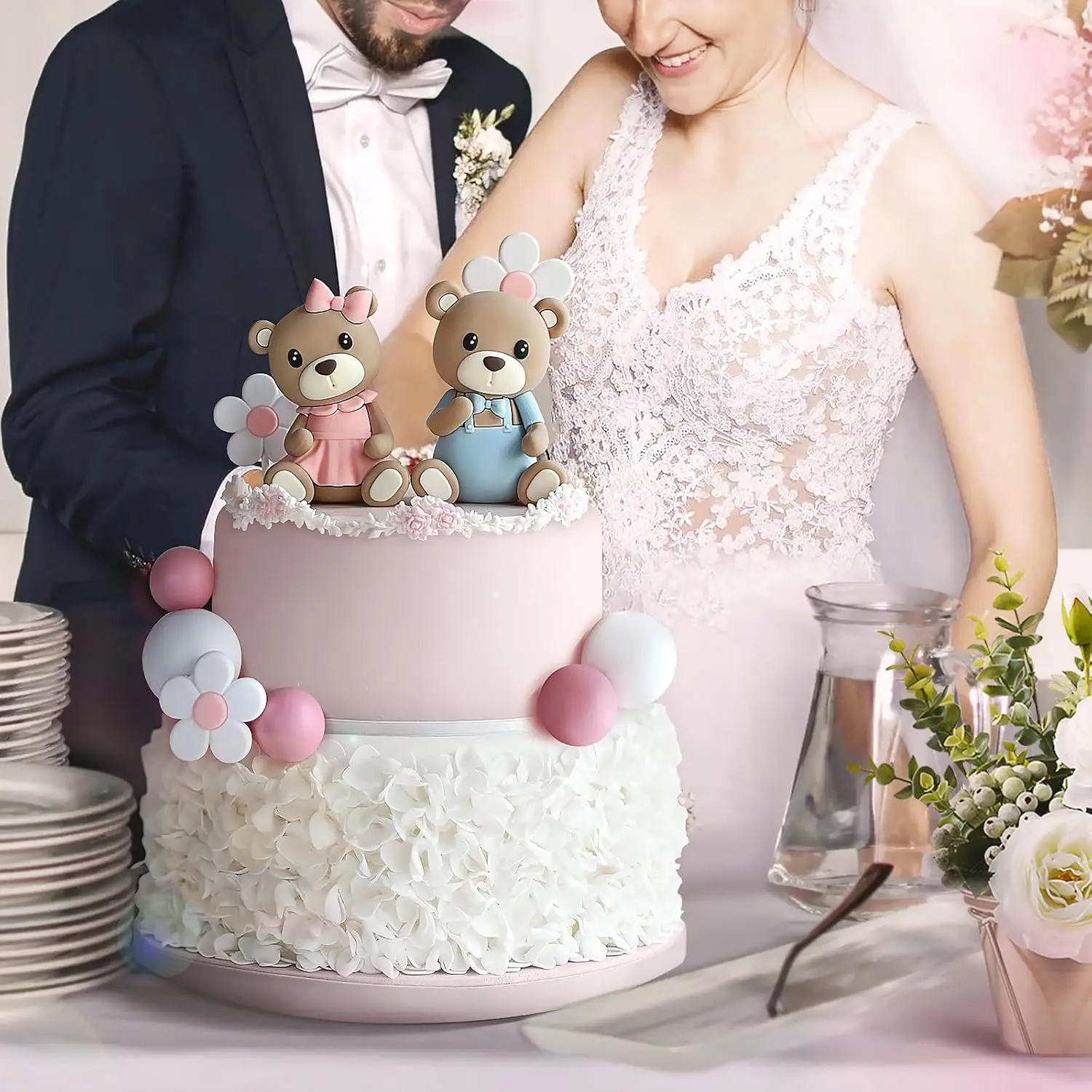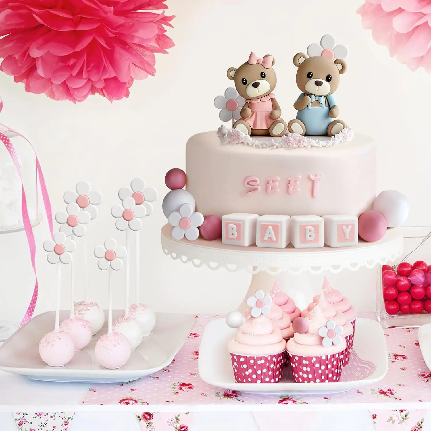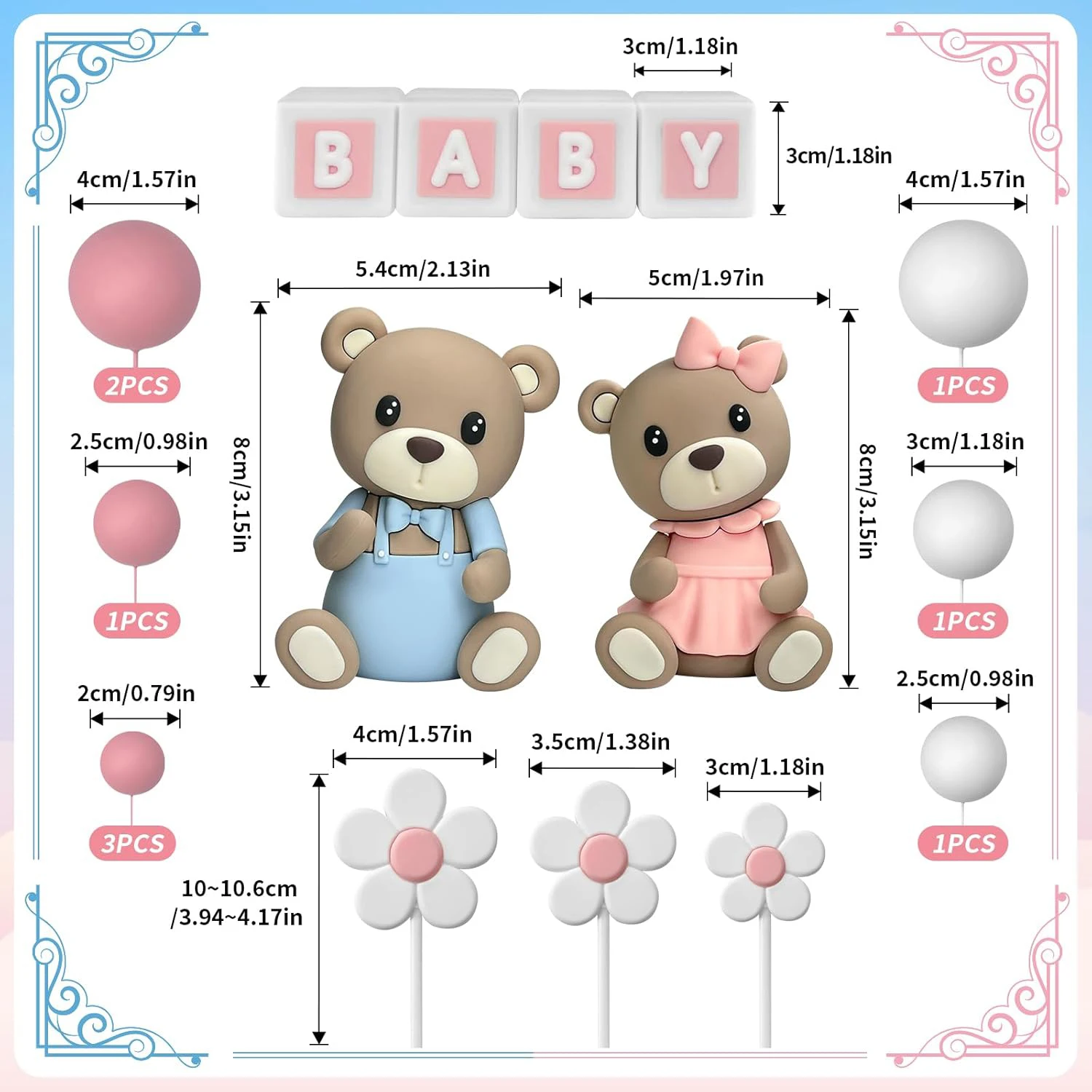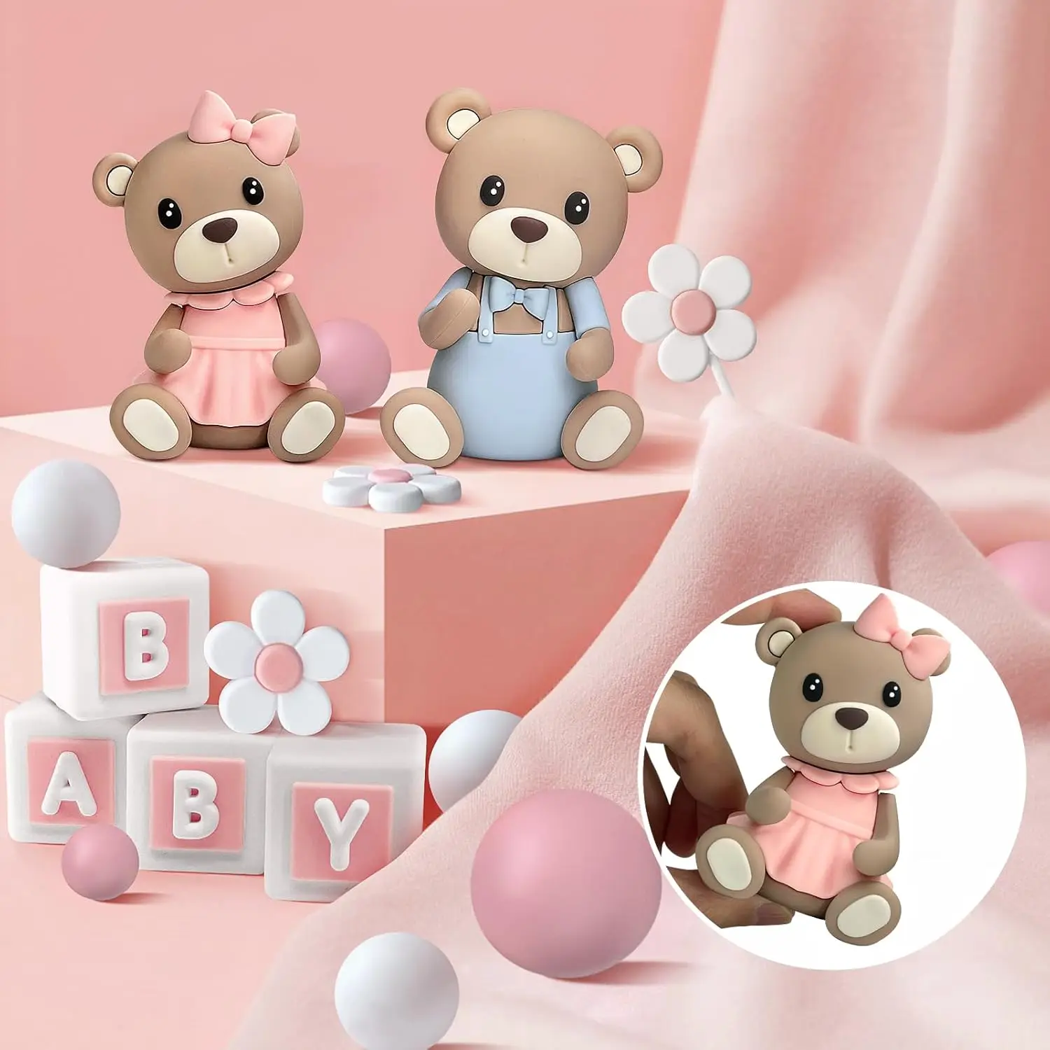 aliexpress , ali , shop , ali shop , online , store , online shop , online store , buy , sell , 18Pcs Gender Reveal Cake Toppers,Pearl Balls Cake Decorations with Bear Cake Toppers for Boys Girls Baby Shower Gender Reveal