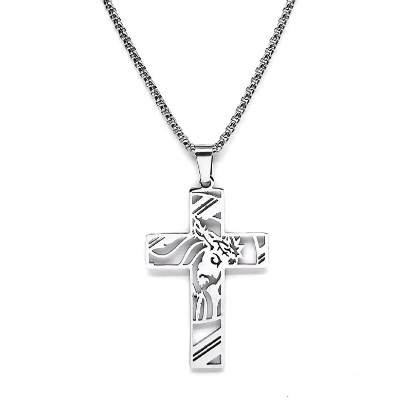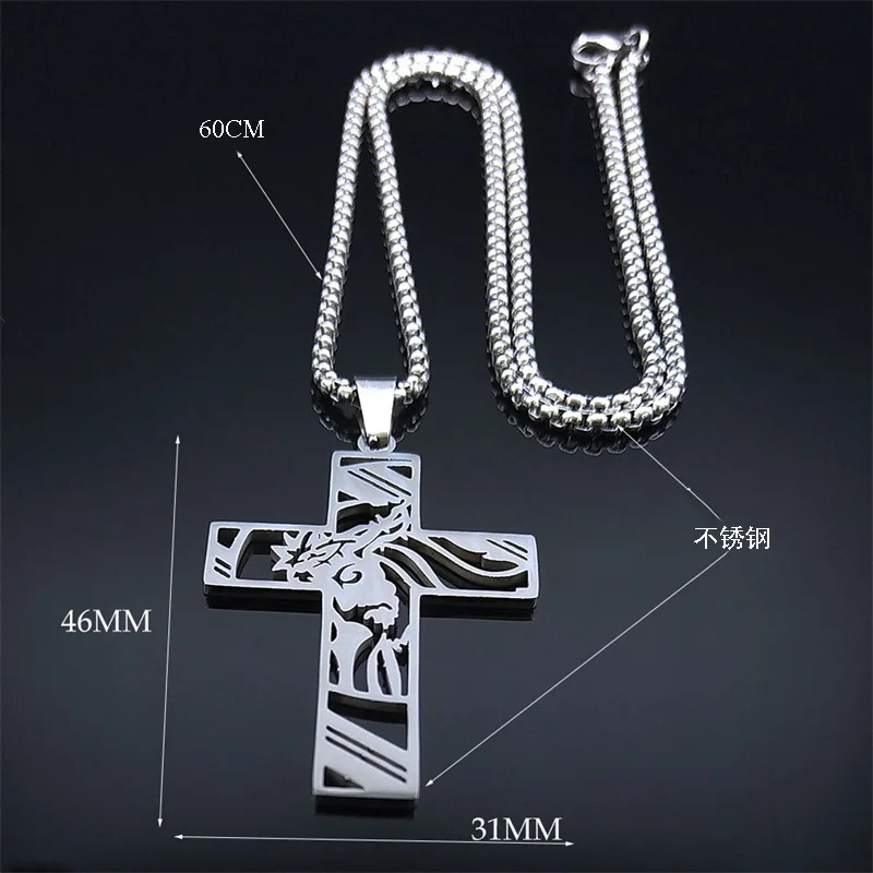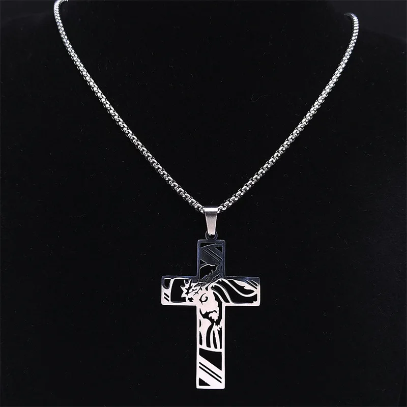 Hip Hop Punk Crown of Thorns Jesus Cross Necklace for Men Stainless Steel Gold Plated Crucifix Pendant Necklaces Jewelry