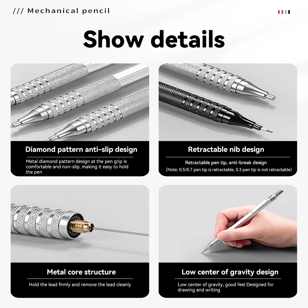 Mechanical Pencil 0.3 0.5 0.7 mm Full Metal Low Center of Gravity Art Drawing Painting Automatic Pencil Office School Art Supply