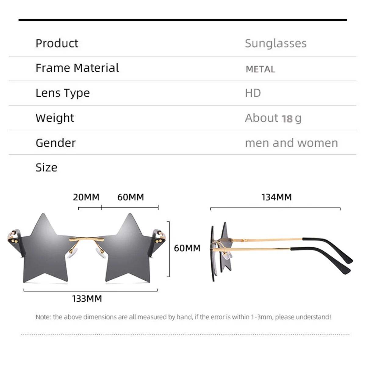 New Rimless Sunglasses with Five-pointed Star Shape and Colorful Ocean Sunglasses Sunglasses women's Sunglasses men's