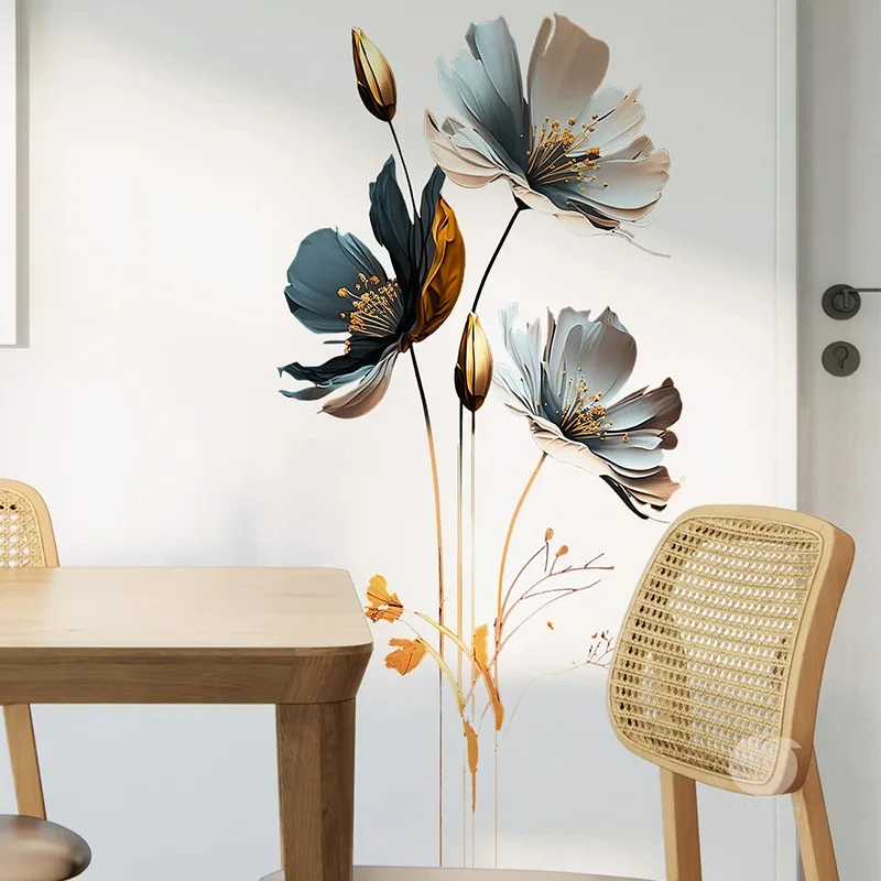 1PCS Simulation Three-Dimensional Relief Texture Flowers Bedroom Home Decoration Wall Stickers Self-Adhesive