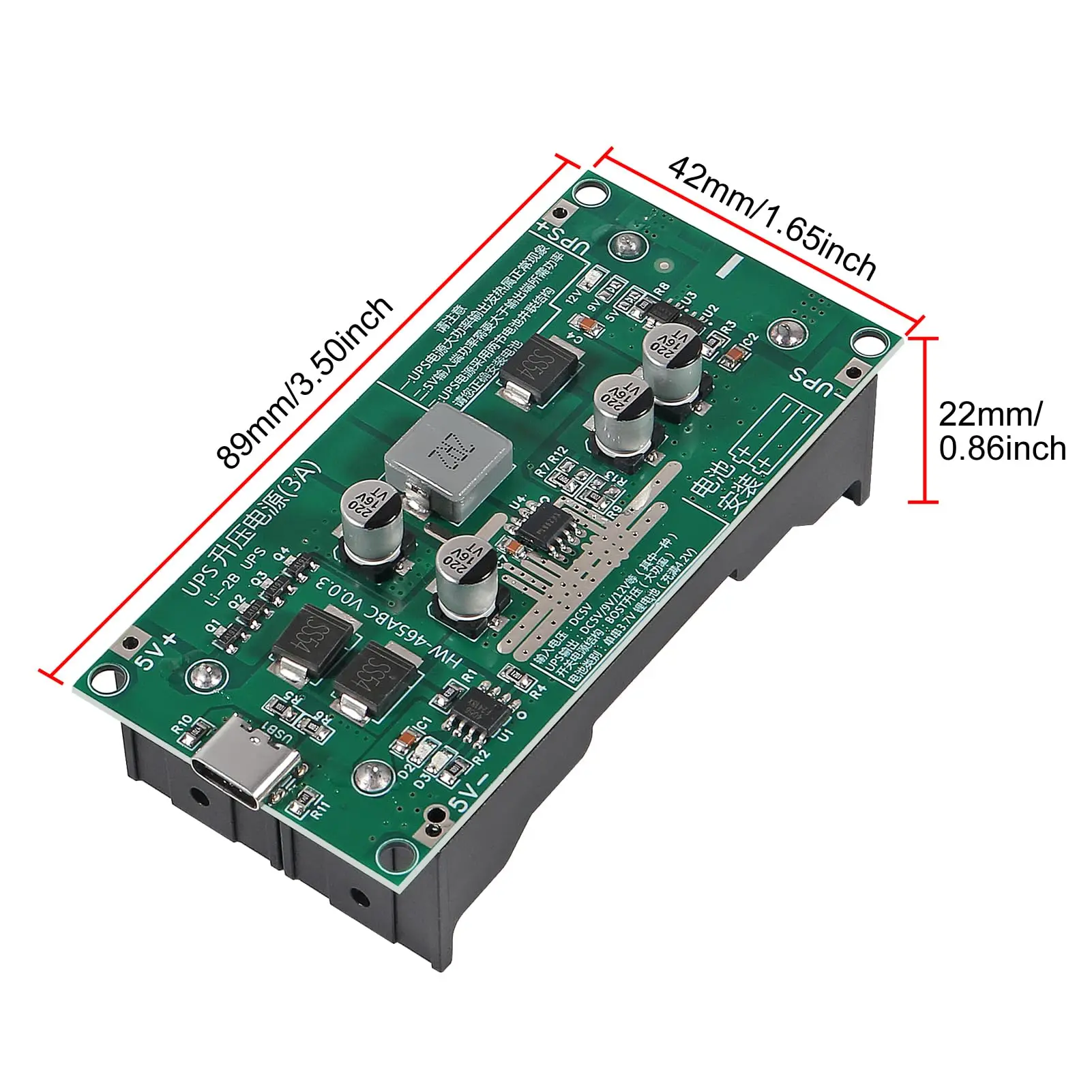Type-C 15W 3A Fast Charge UPS Power Supply / 18650 Lithium Battery Charger Module DC-DC Step Up Booster Converter 5V 9V 12V