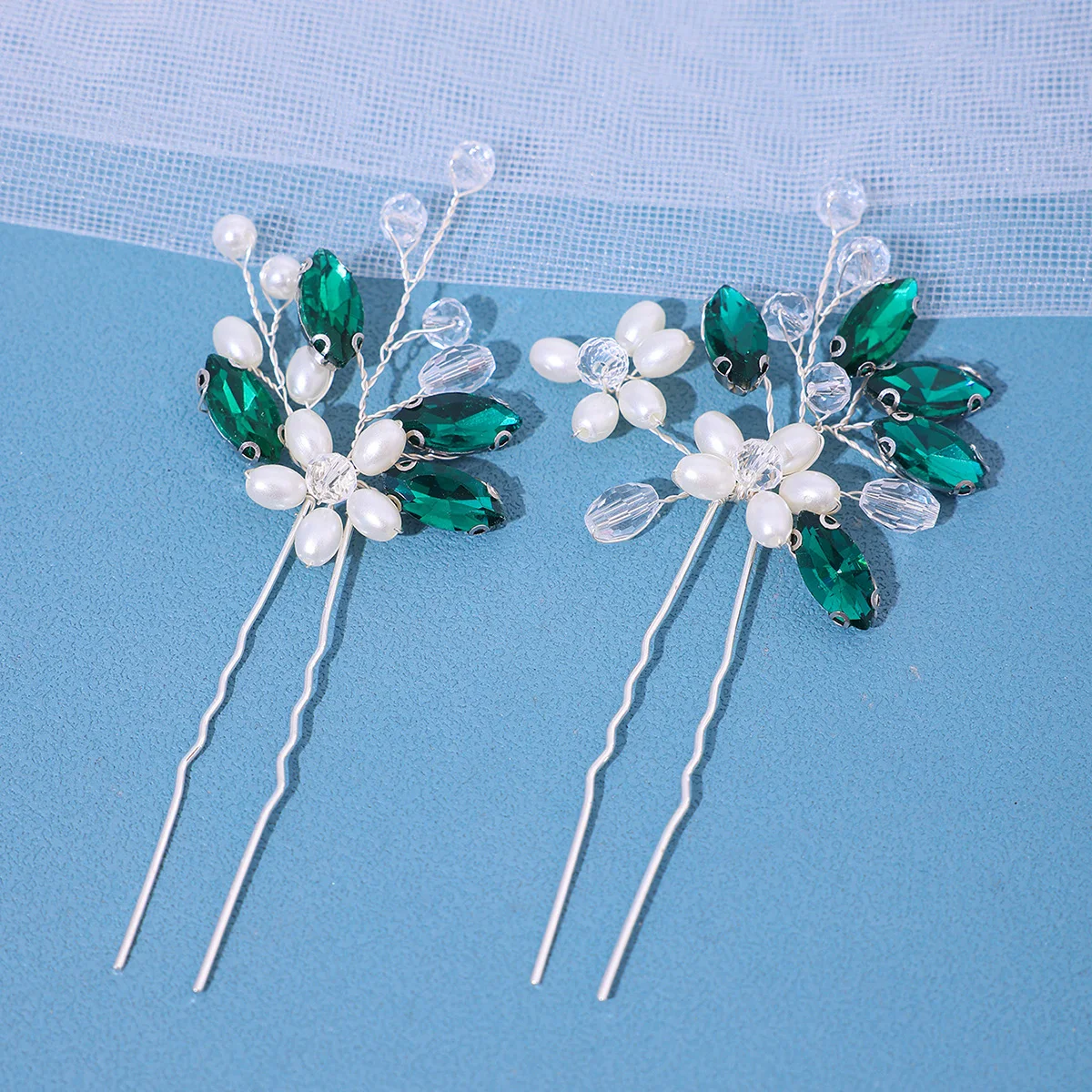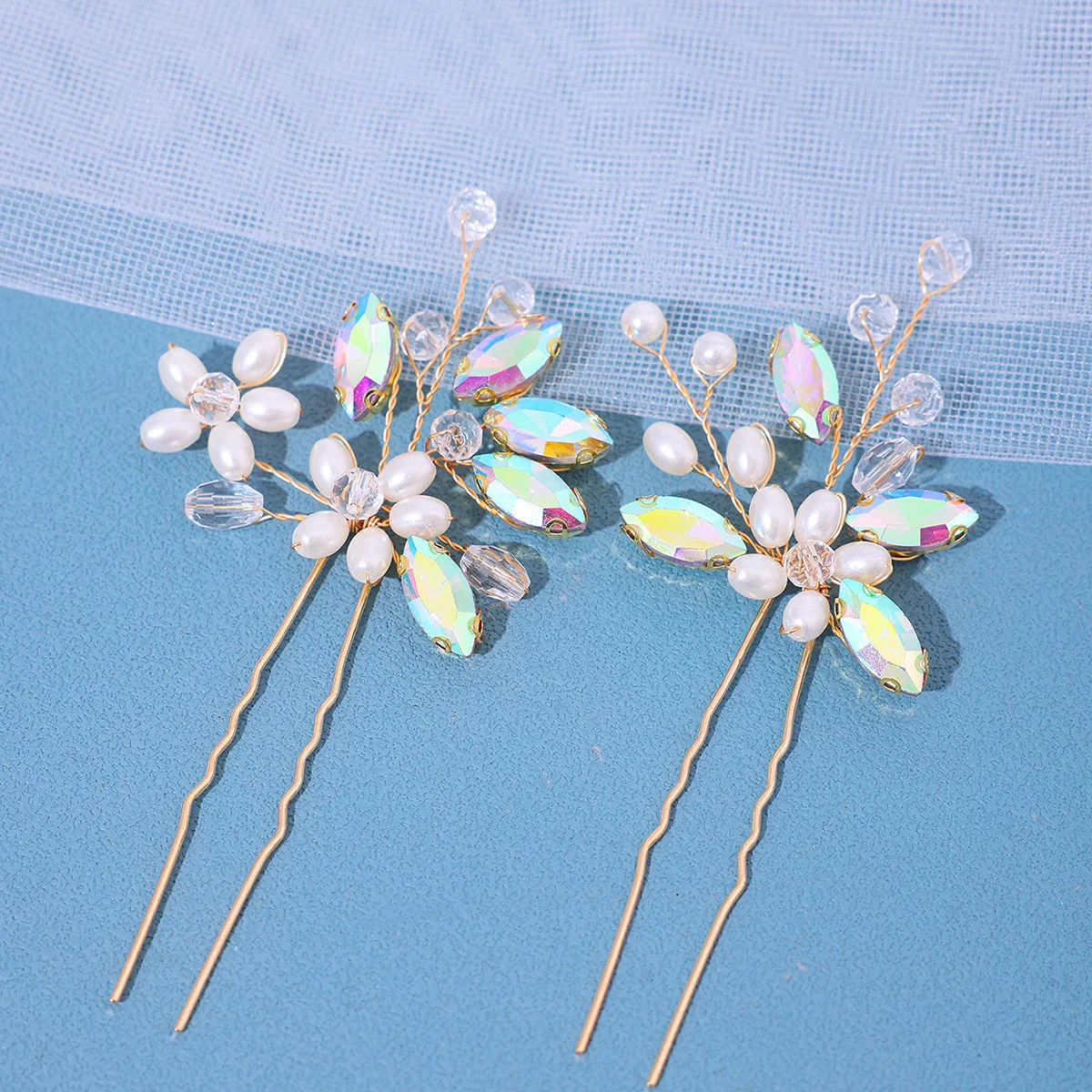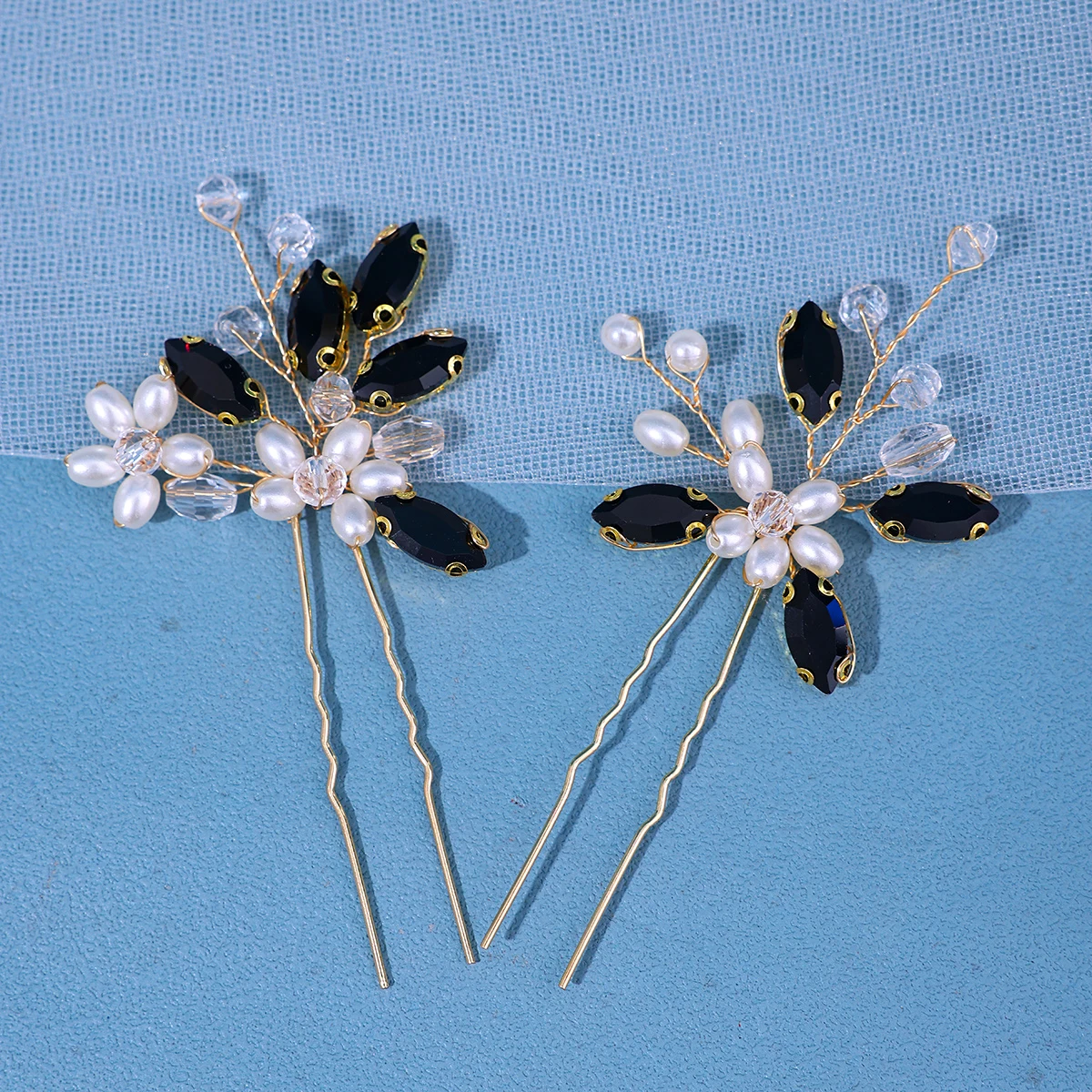 2Pcs Handmade Crystal Pearls Hairpins Flower Hairbands For Women Bride Wedding Hair Accessories More Color Rhinestone Hair Clips
