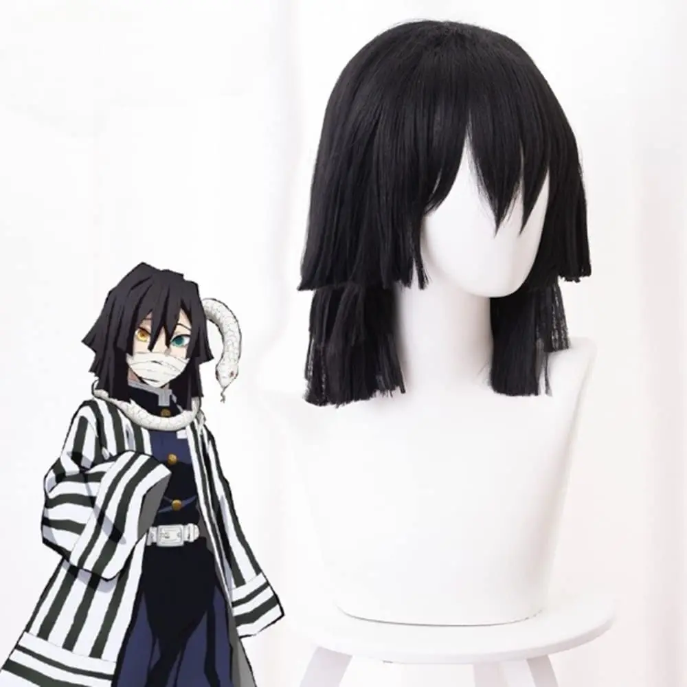 Anime Iguro Obanai Cosplay Wig Kimetsu no Yaiba Black Wig with Bangs Cosume Party Short Wigs