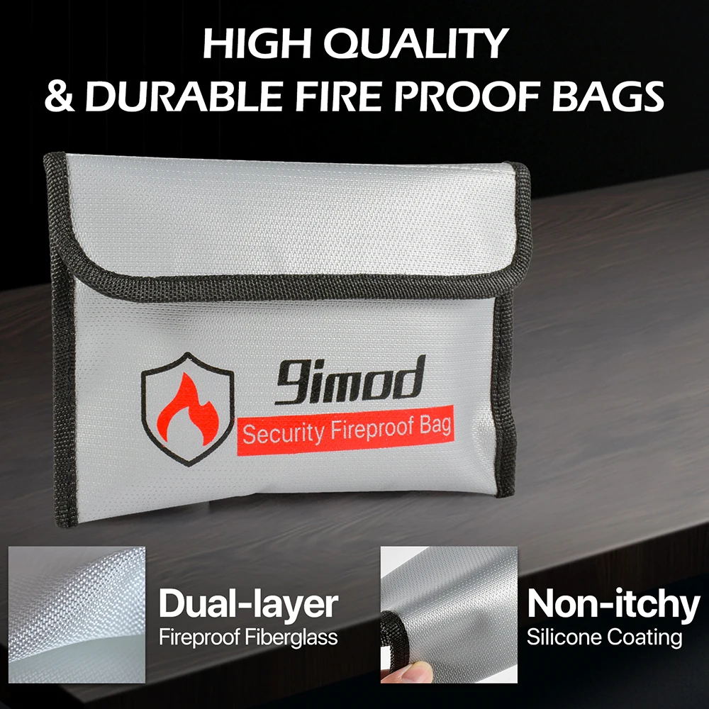 9imod 5x8 inch Portable Fireproof Bag Explosion-Proof Waterproof Lipo Battery Safety Bag Document Currency Keys Fireproof Bag