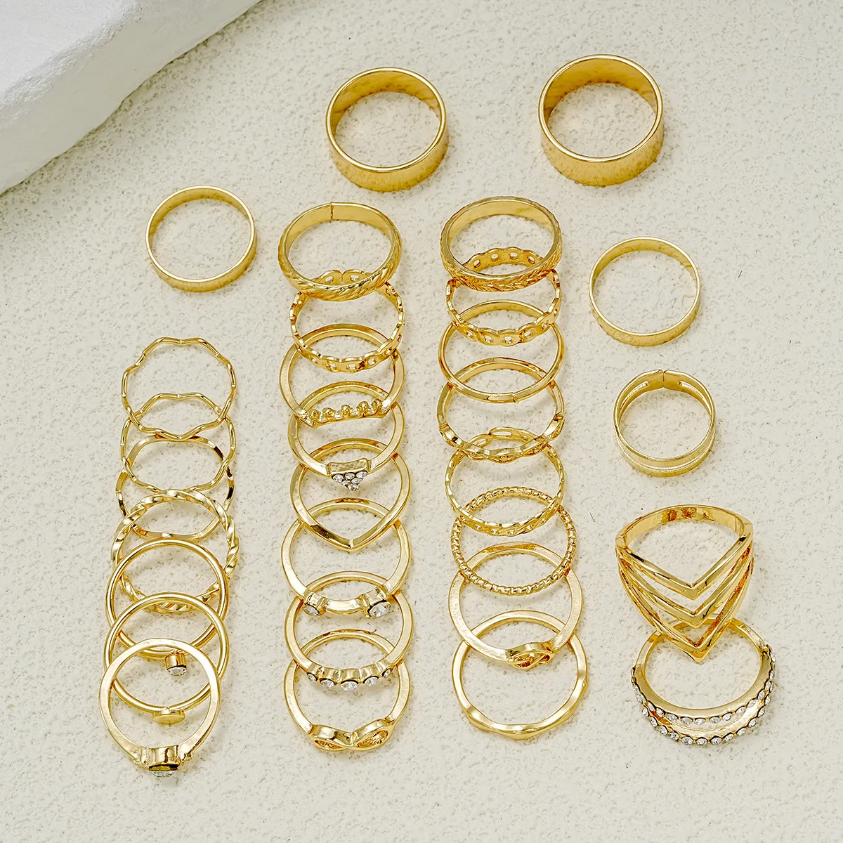 30pcs Elegant Boho Gold Color Rings Set Vintage Design Rhinestone Geometric Finger Ring Trendy Minimalist Jewelry Gifts 2024