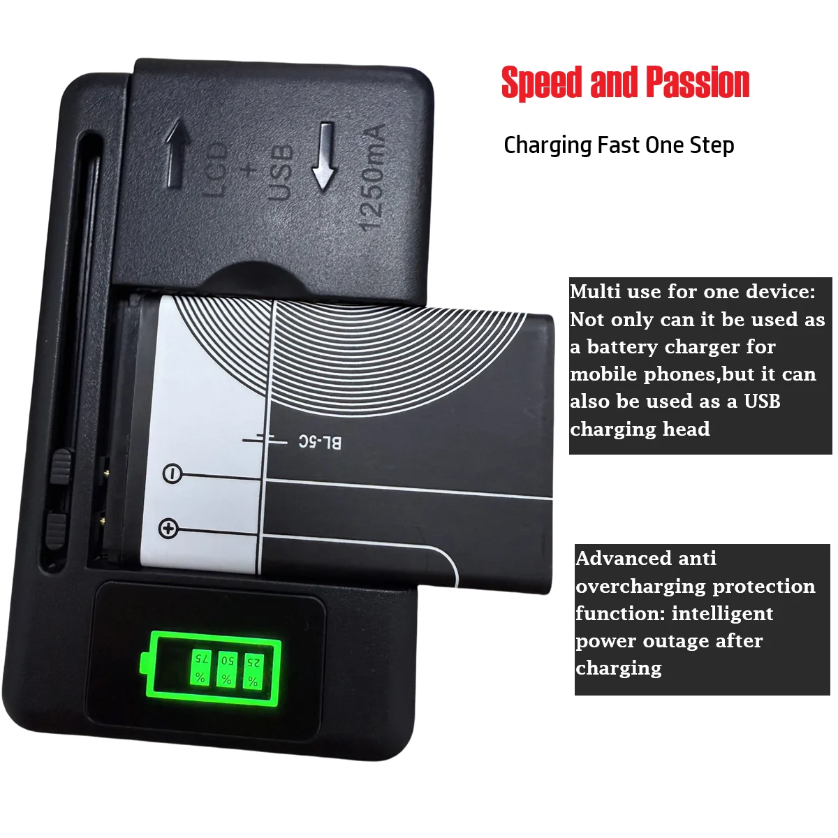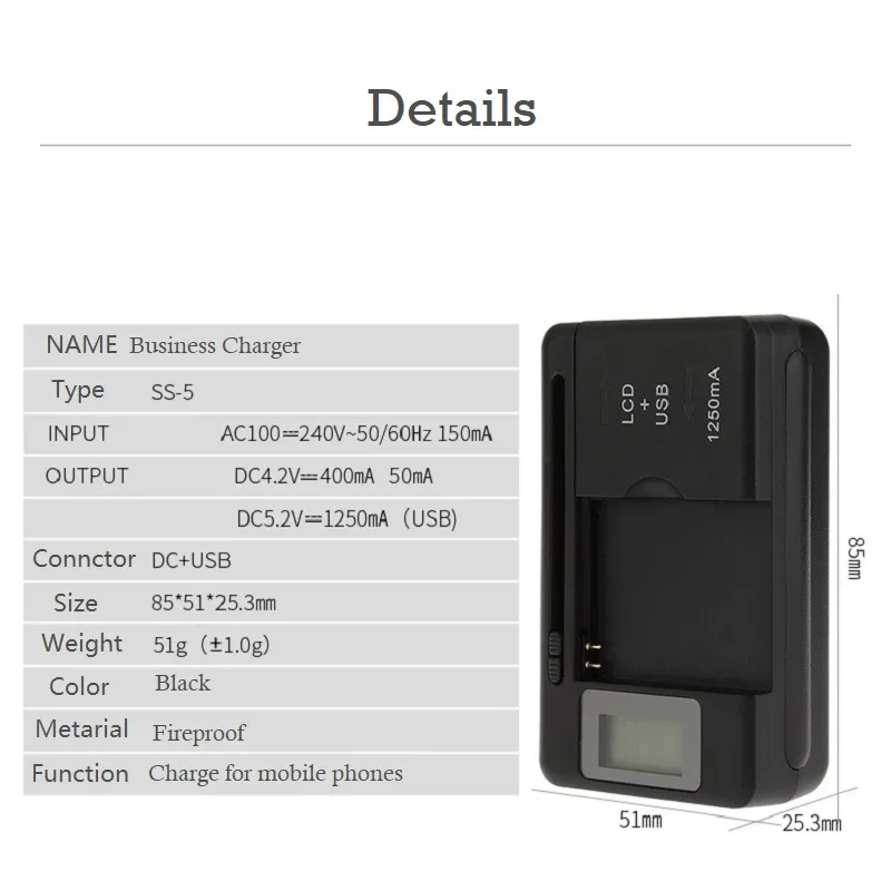 Mobile Battery Charger Universal LCD Indicator Screen USB-Port For Cell Phone Chargers 32-55mm Battery Charging US UK EU Plug