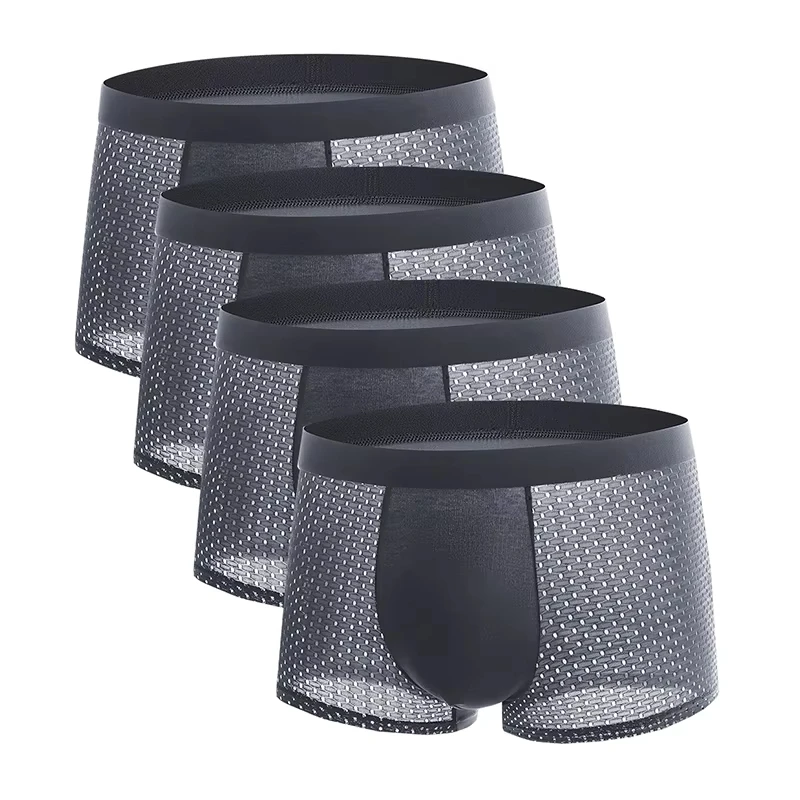 4pcs Men Boxershorts Lce Silk Mesh Men's Underwear Panties Solid Comfortabler Summer Breathable Lntimate Underpants