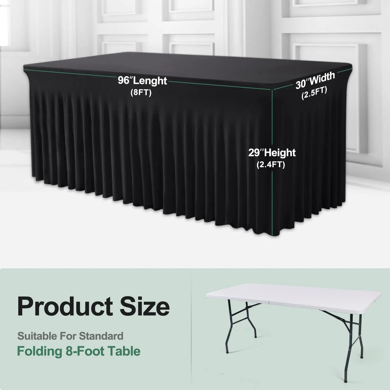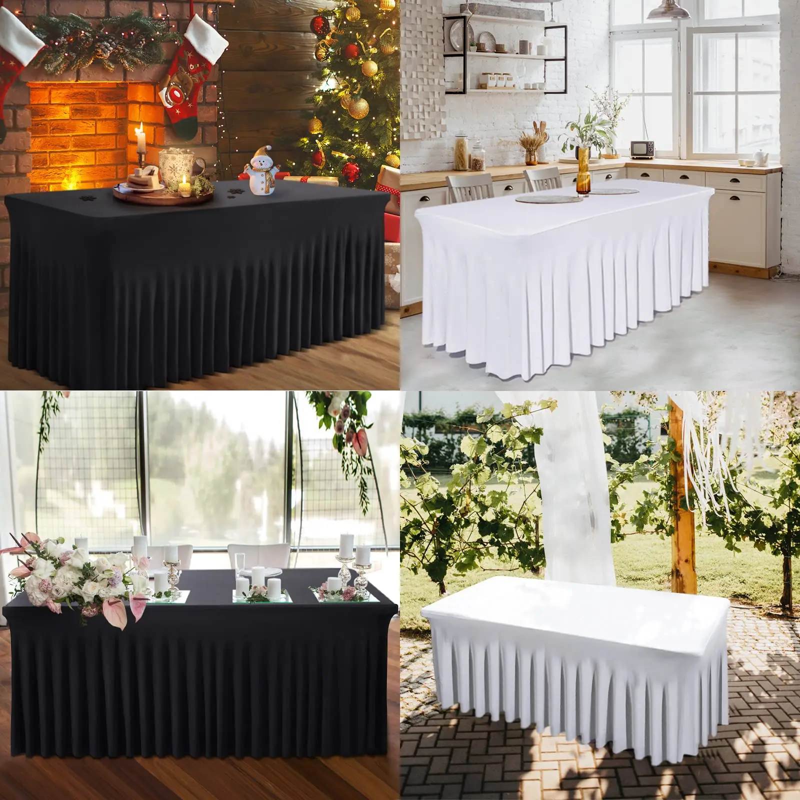 4Ft 6Ft 8Ft Spandex Table Skirt Universal Fitted Stretch Tablecloth for Party, Banquet, Wedding and Events